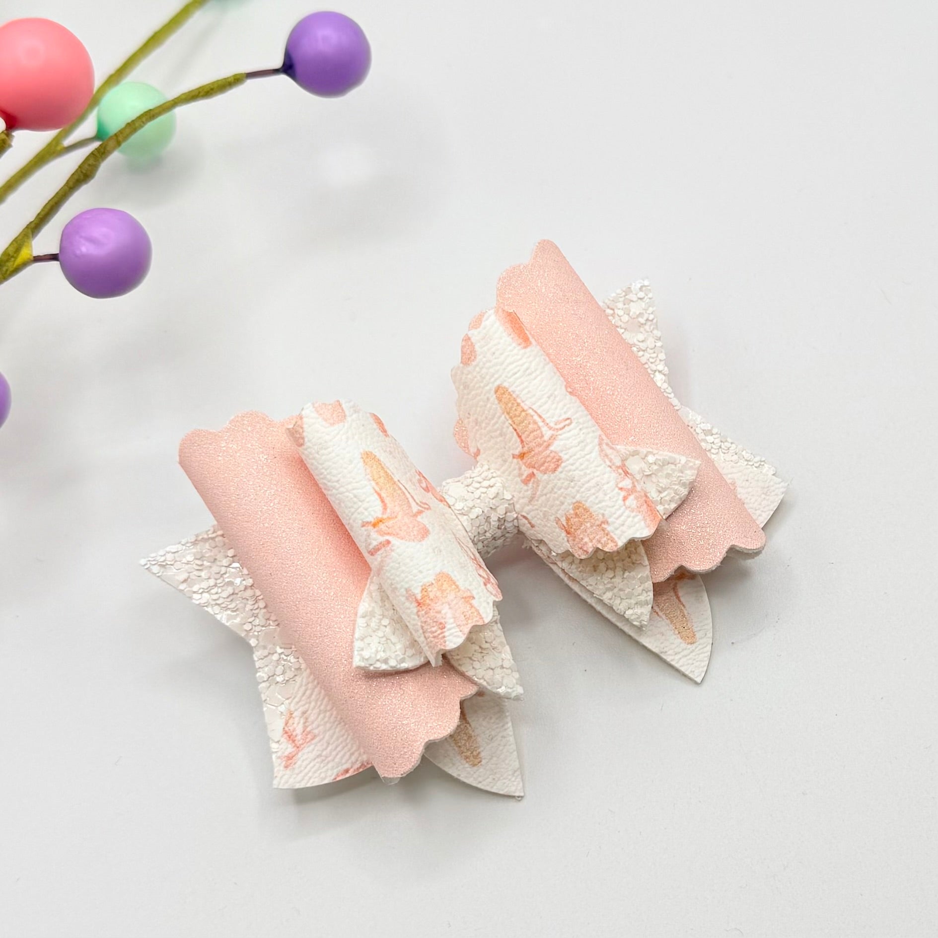 Beautiful soft, delicate colours make this double looped hair bow super pretty. On double glitter tails and fitted with a crocodile style to the underside for a secure hold. Size approx 8.5 by 6cm.