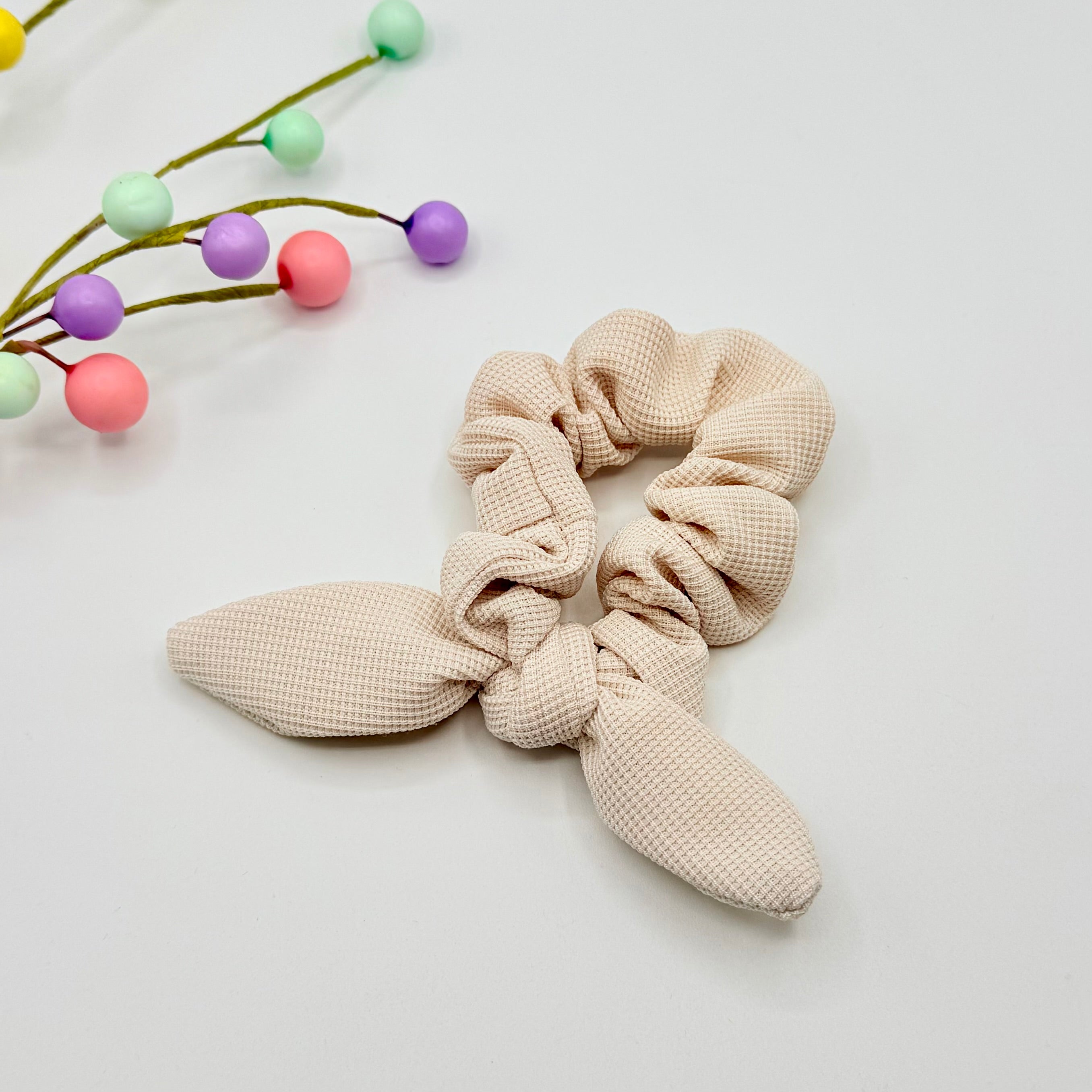 Beige Hair Scrunchie With Rabbit Ears