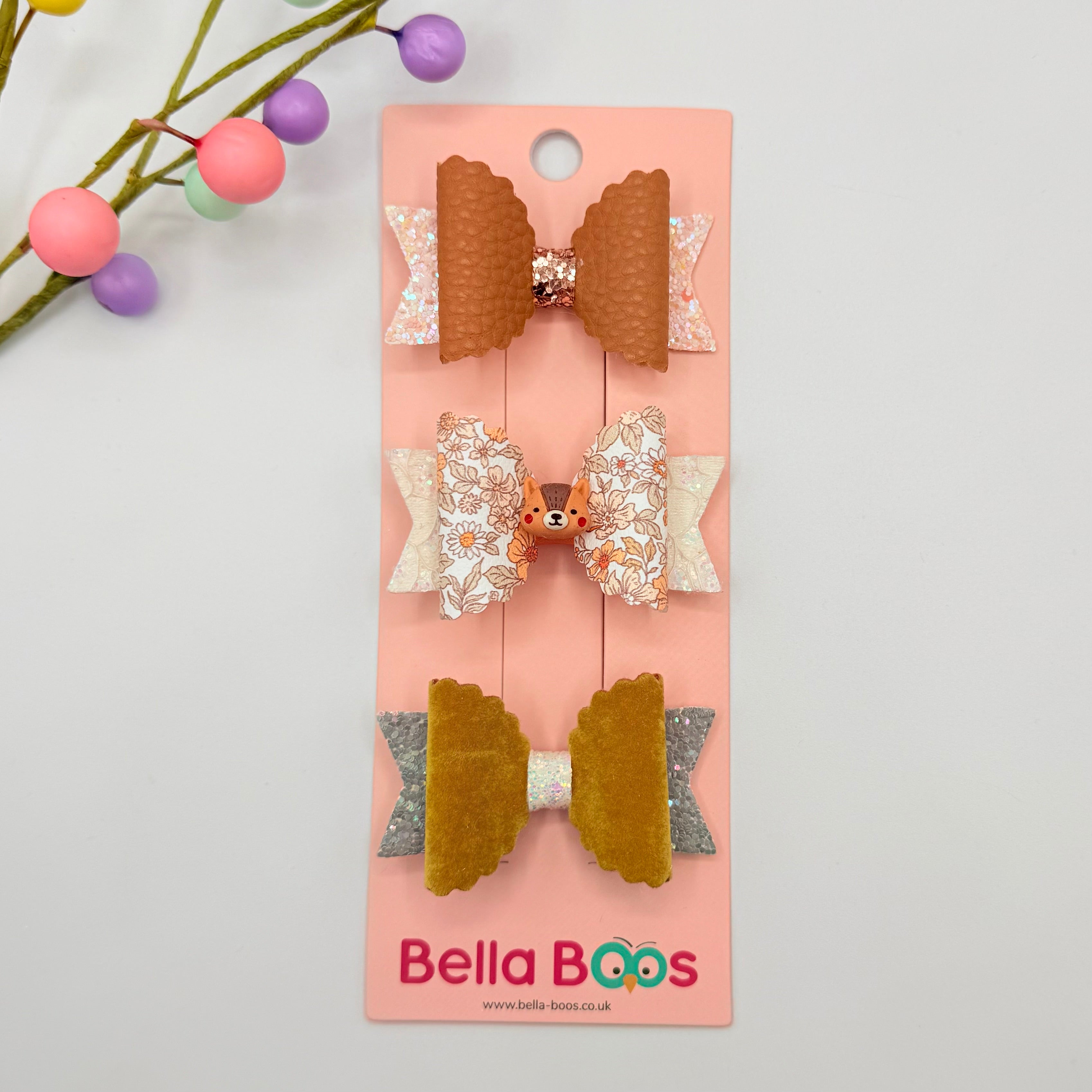 A lovely set of 3 hair bows. All made in pretty fabrics and each fitted with crocodile style clips to the underside for a firm hold.