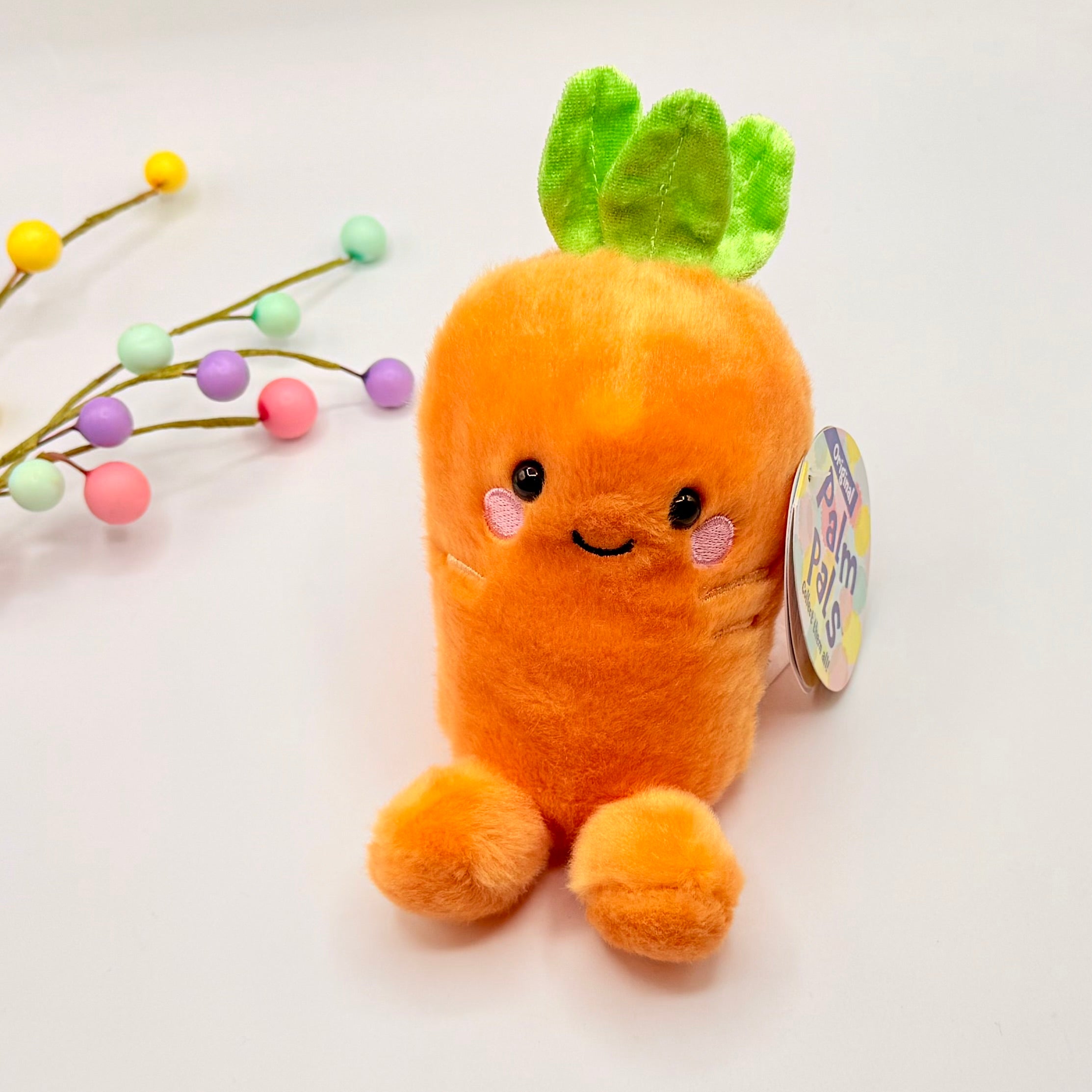 This super cute plush is full of beans which makes it super soft and squishy. This carrot features orange fur and a plump little belly with the cutest little smile which brings a smile to the face of everyone it meets.