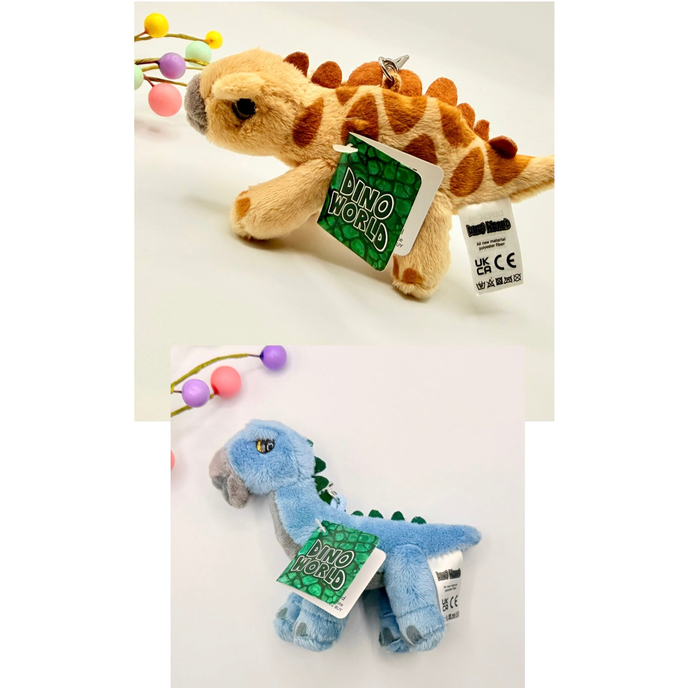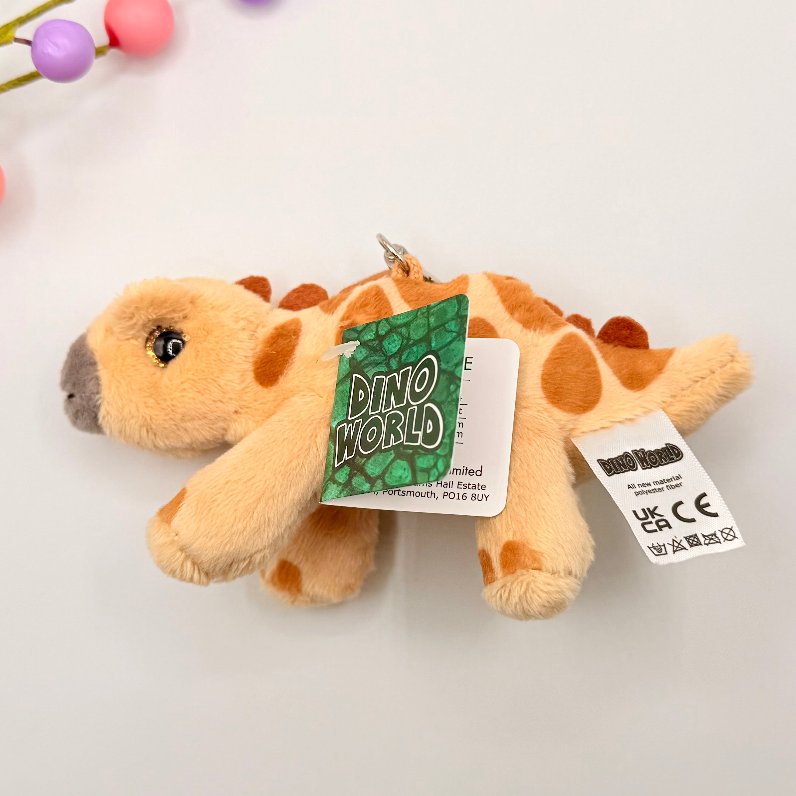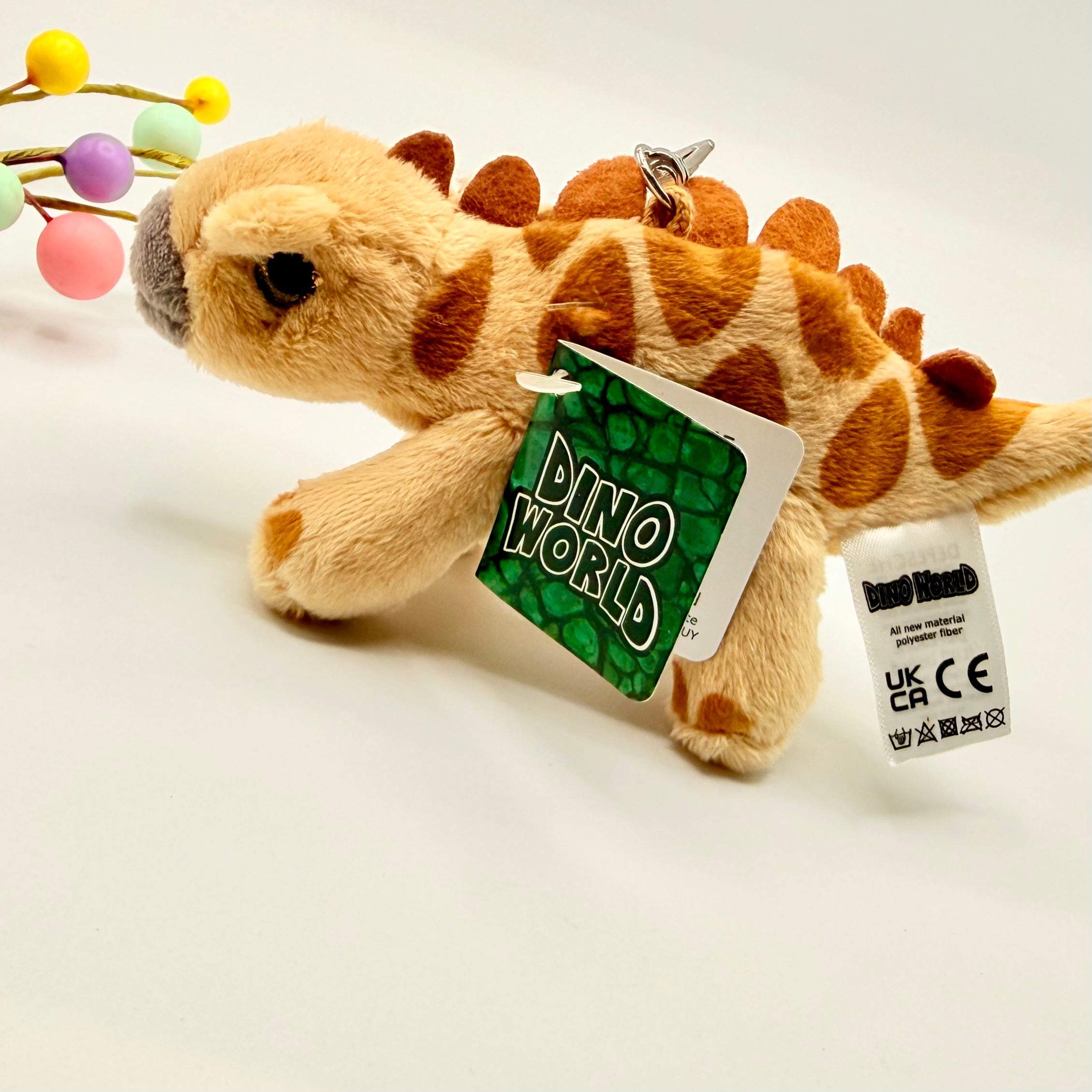 Mini Dino's bring great joy: the small plush Dino is on a carabiner which are great for attaching to your bag or school bag.  Material: 100 per cent polyester
