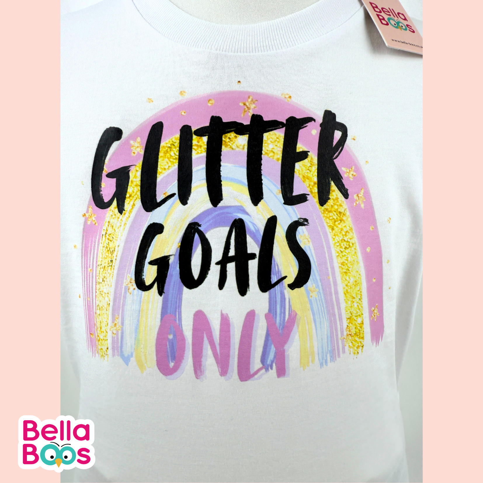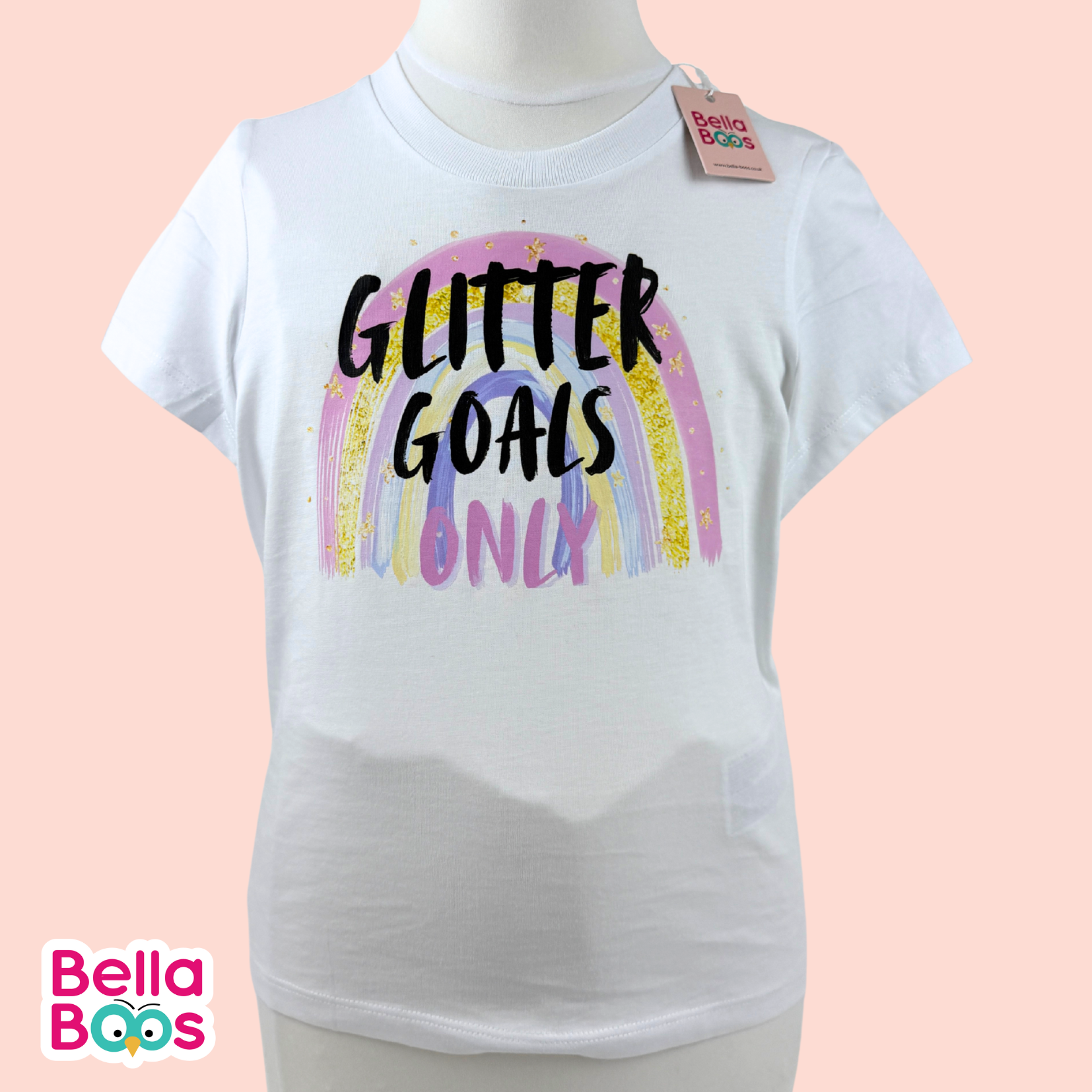 Beautiful pastel Glitter Goals Only t-shirts, 100% organic ringspun combed cotton, 155gsm weight.  Beautiful quality and soft touch feel.