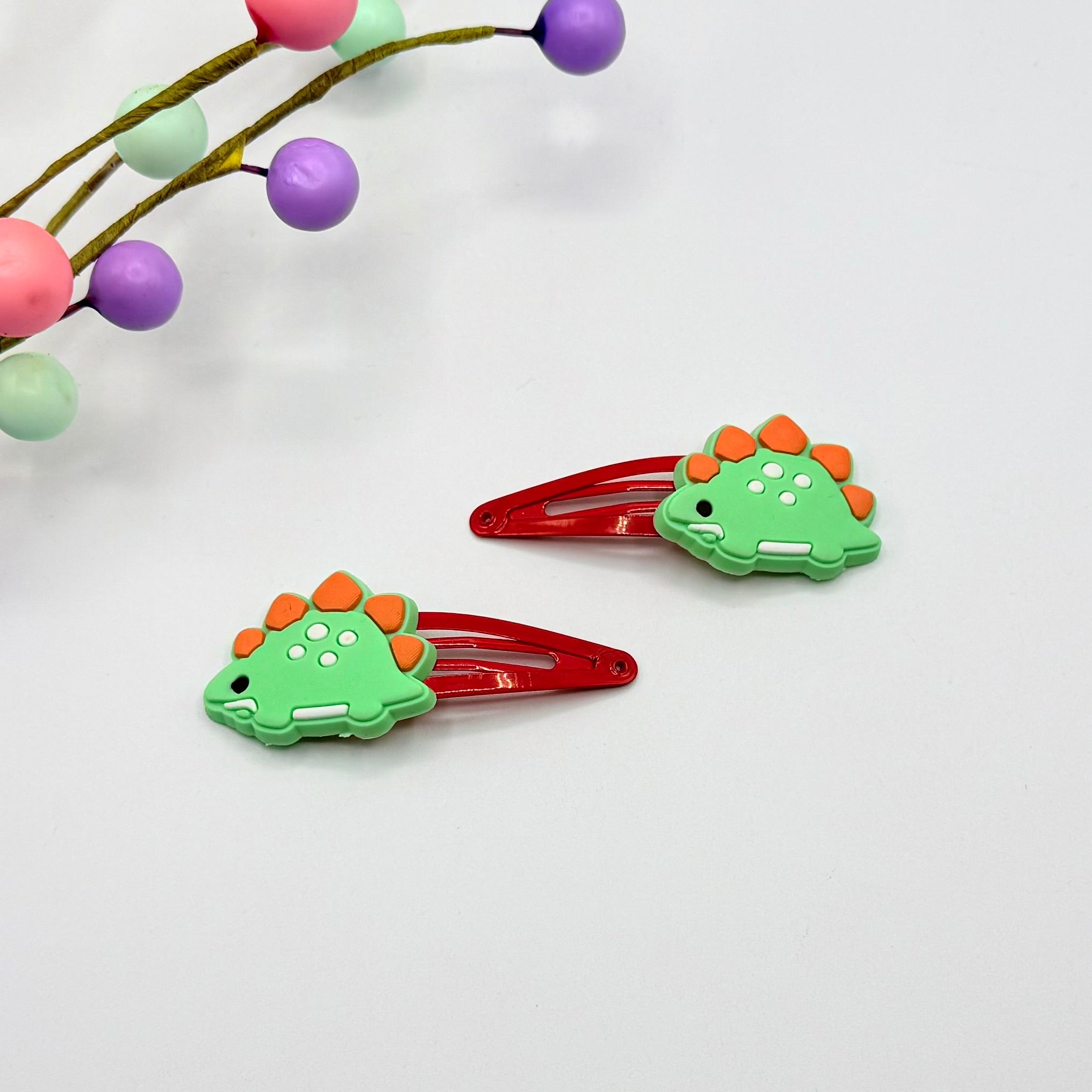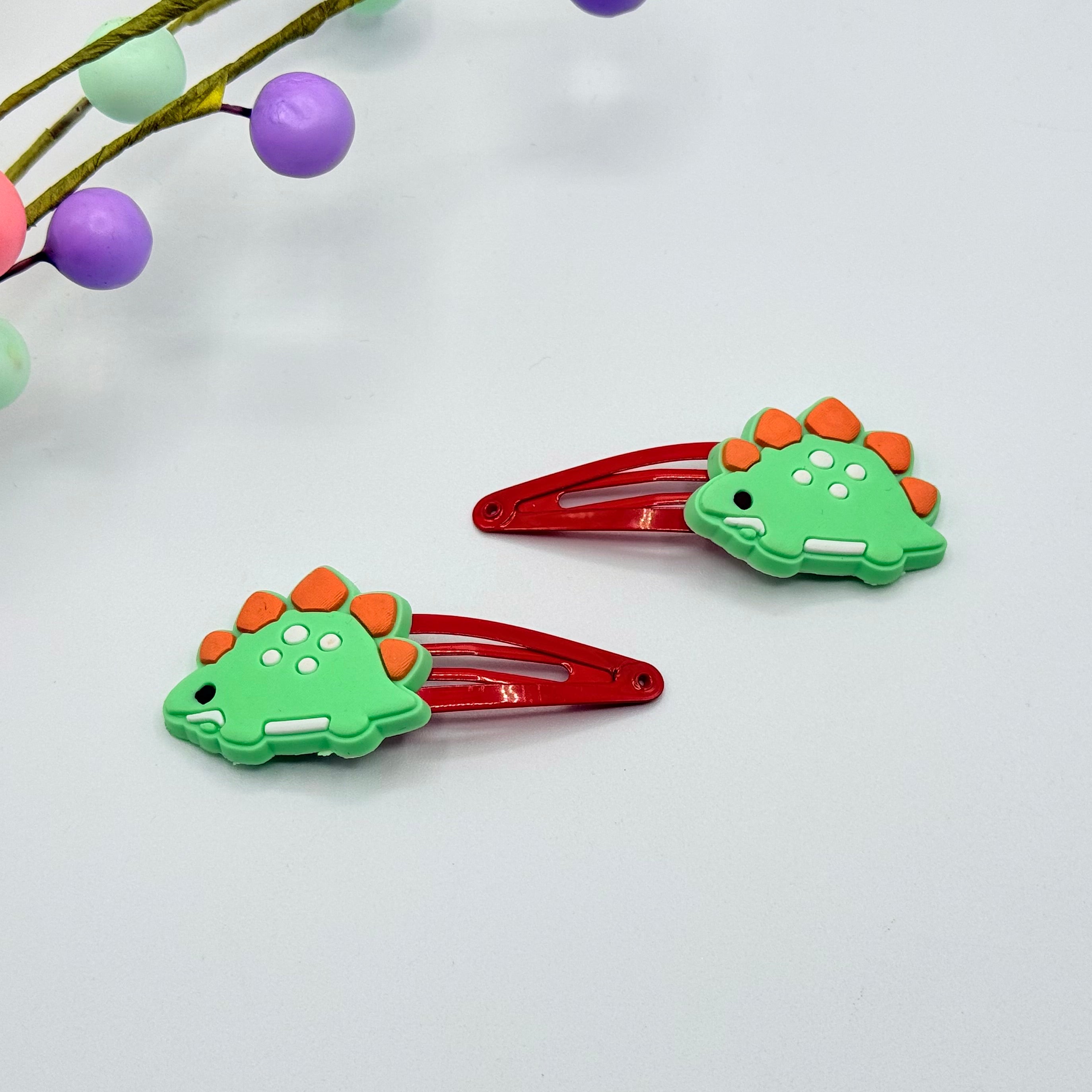 Green Dino Hair Clip Set