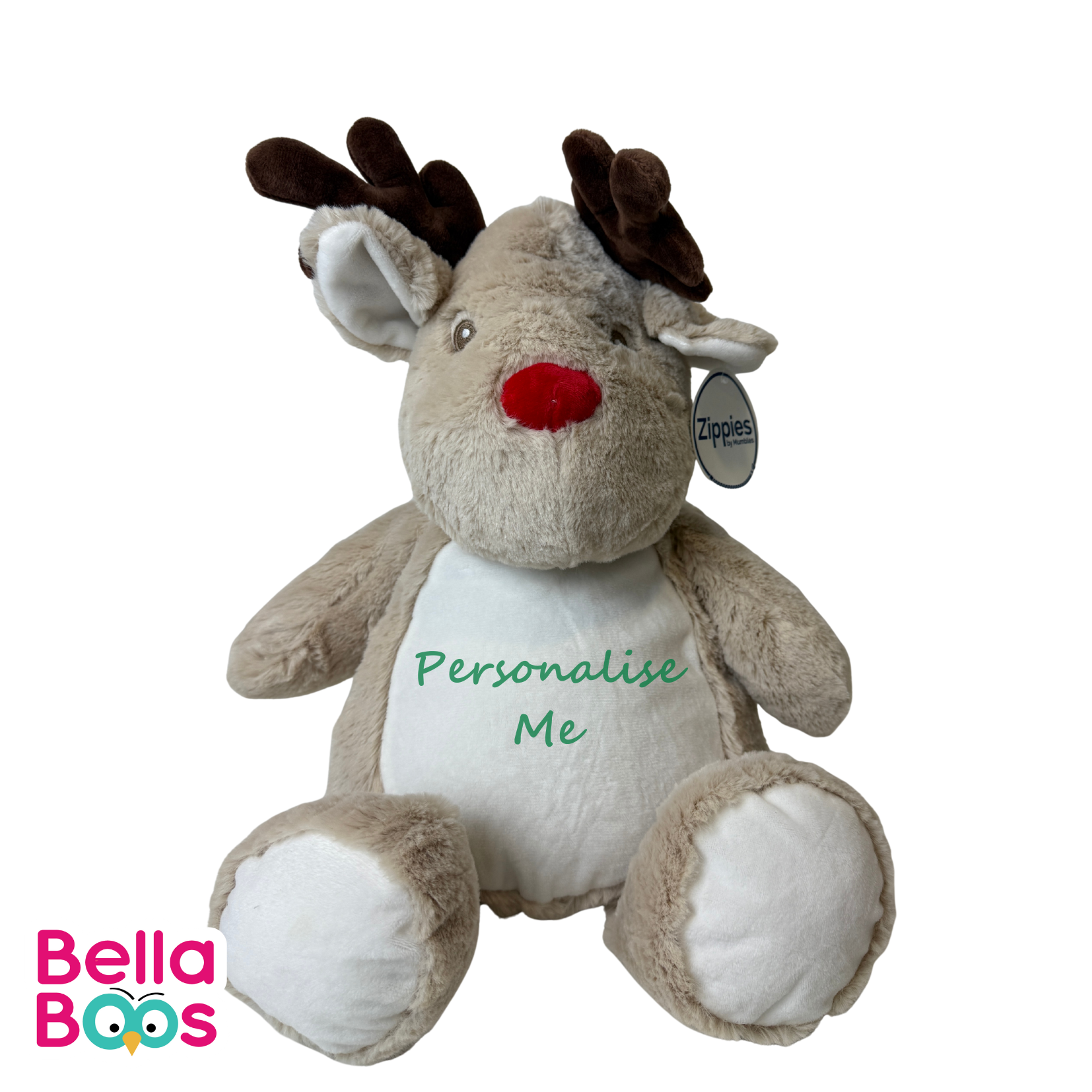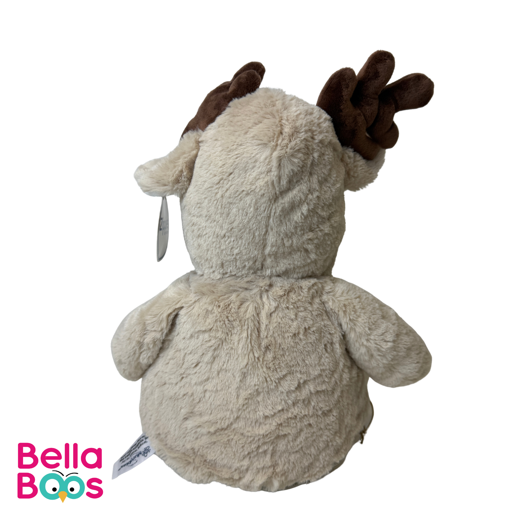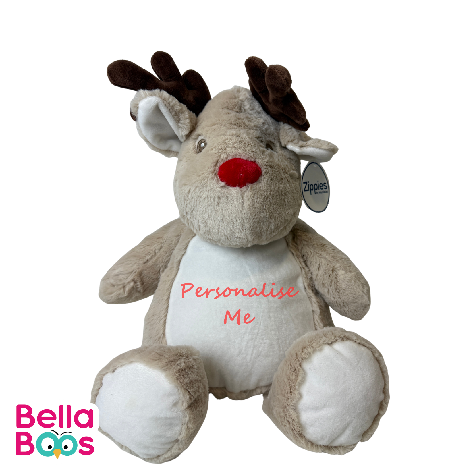 A soft plush mumbles Reindeer personalised with your choice of name or phrase.