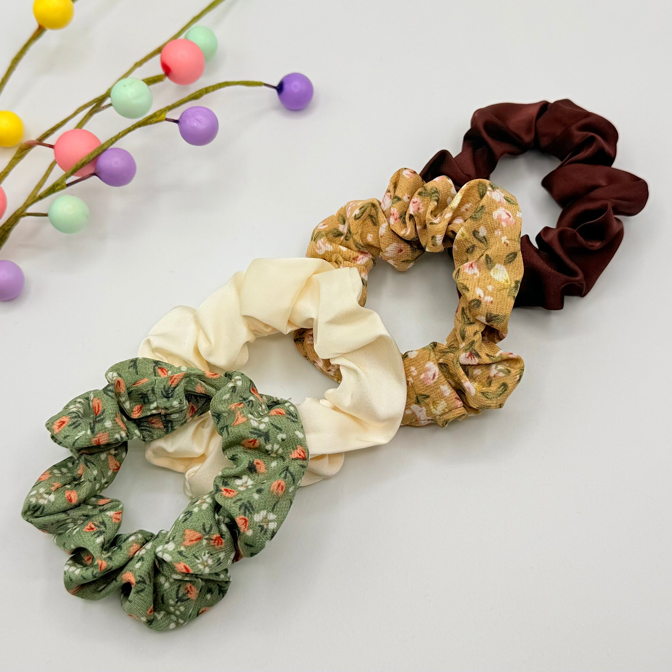 A set of beautiful elasticated, dainty style hair scrunchies.