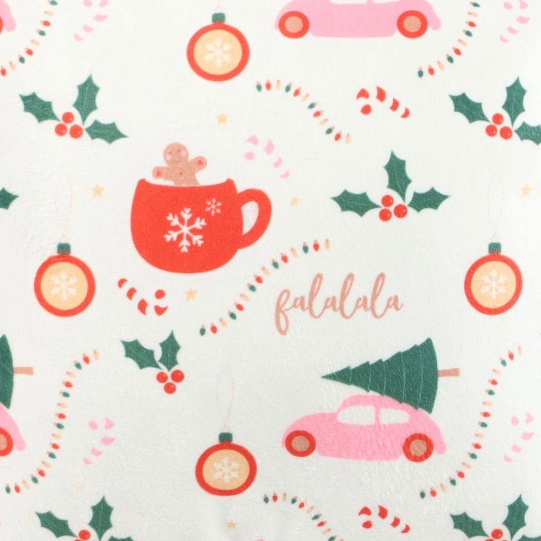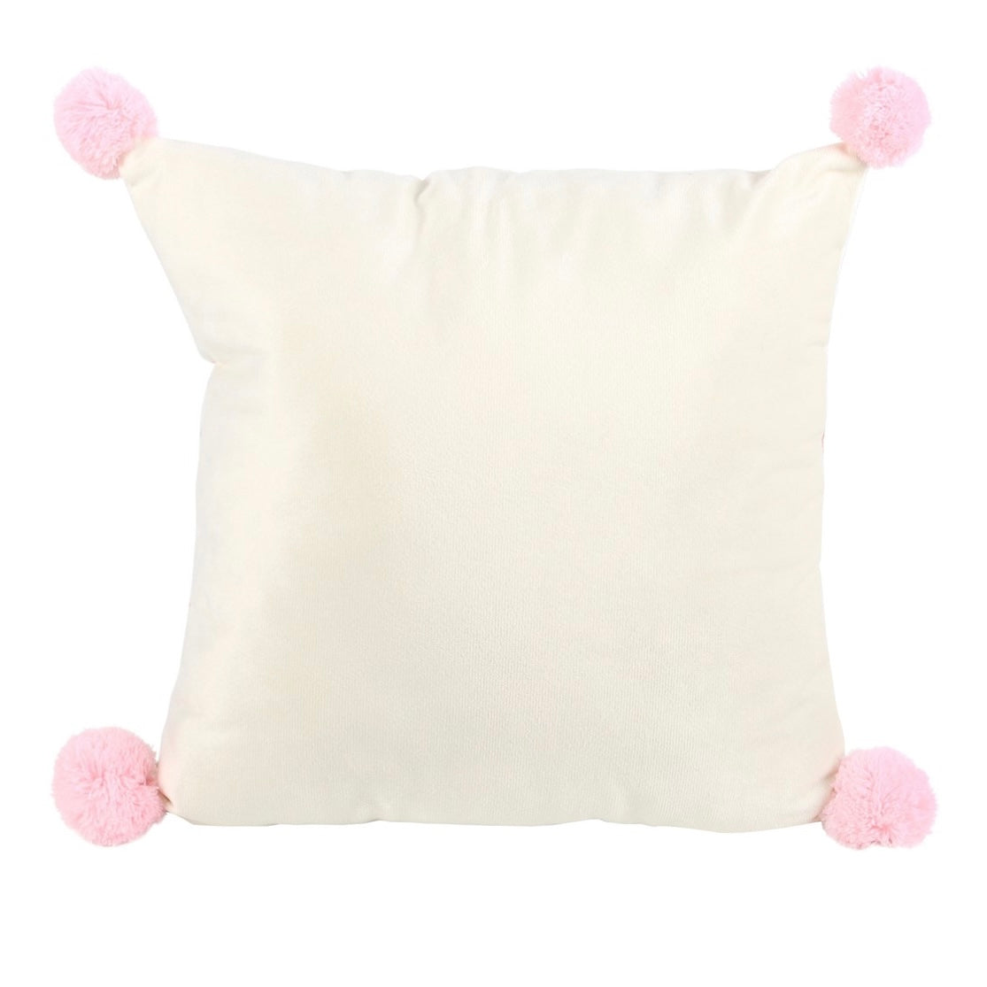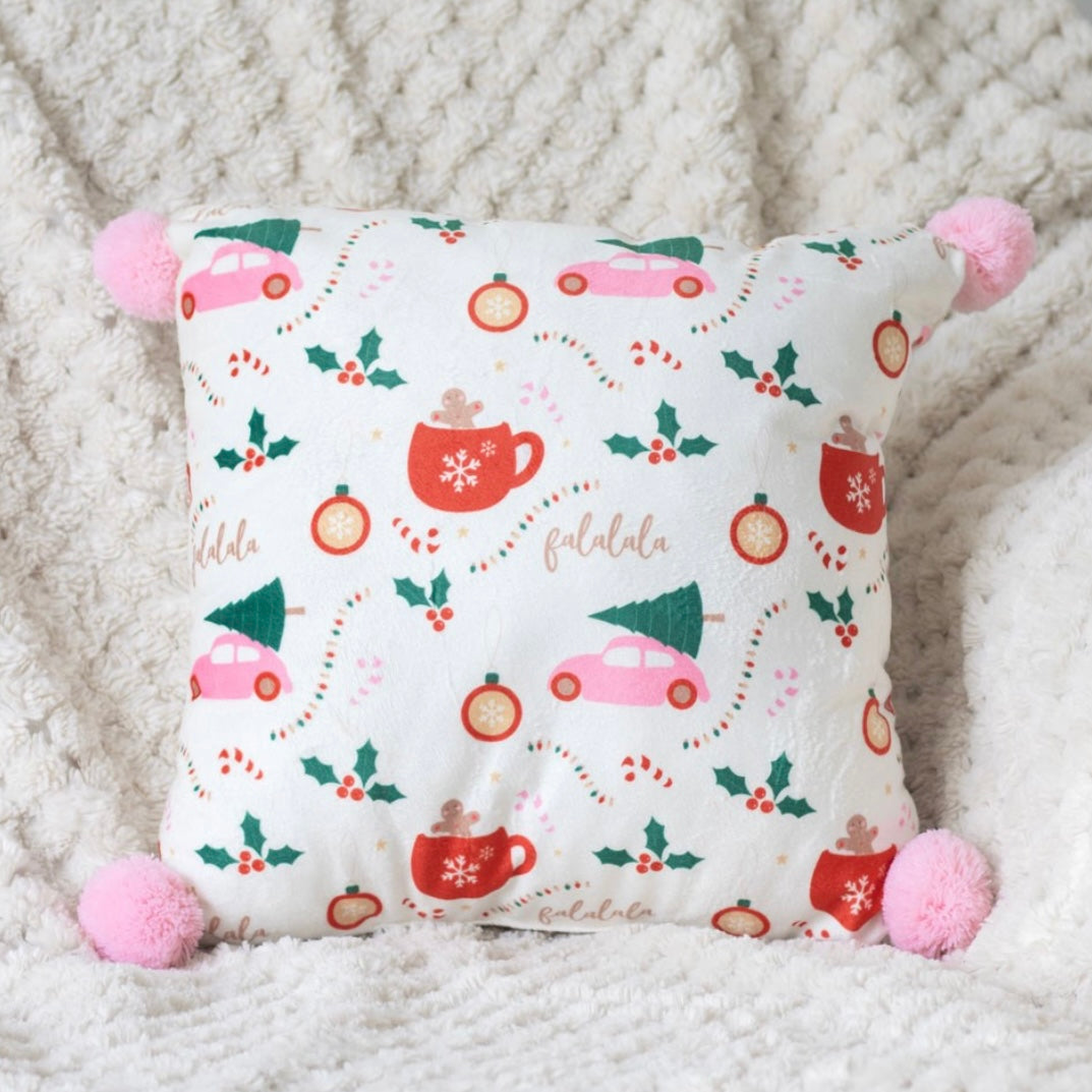 Add some fun, festive style to the home with this Christmas print cushion featuring traditional icons with a modern twist. Pink pom poms add extra flair to this design making it perfect for creating a vibrant and inviting space sprinkled with Christmas magic. 100% polyester, dry clean only.