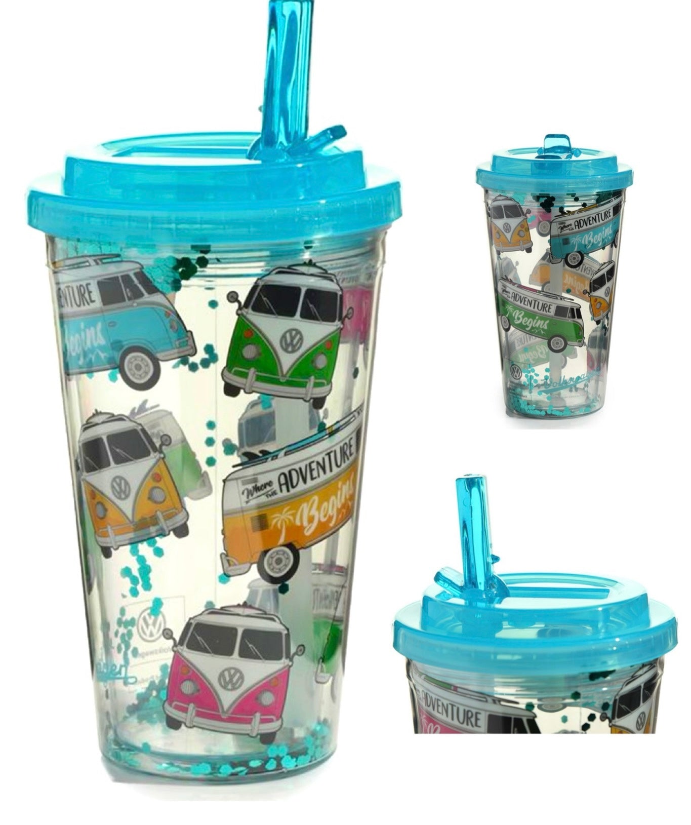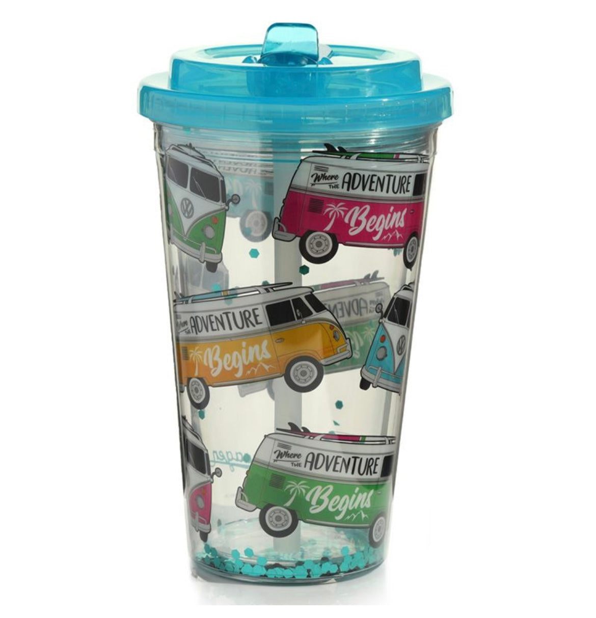Shatterproof Volkswagen VW T1 Camper Bus Surf Double Walled Cup & Straw