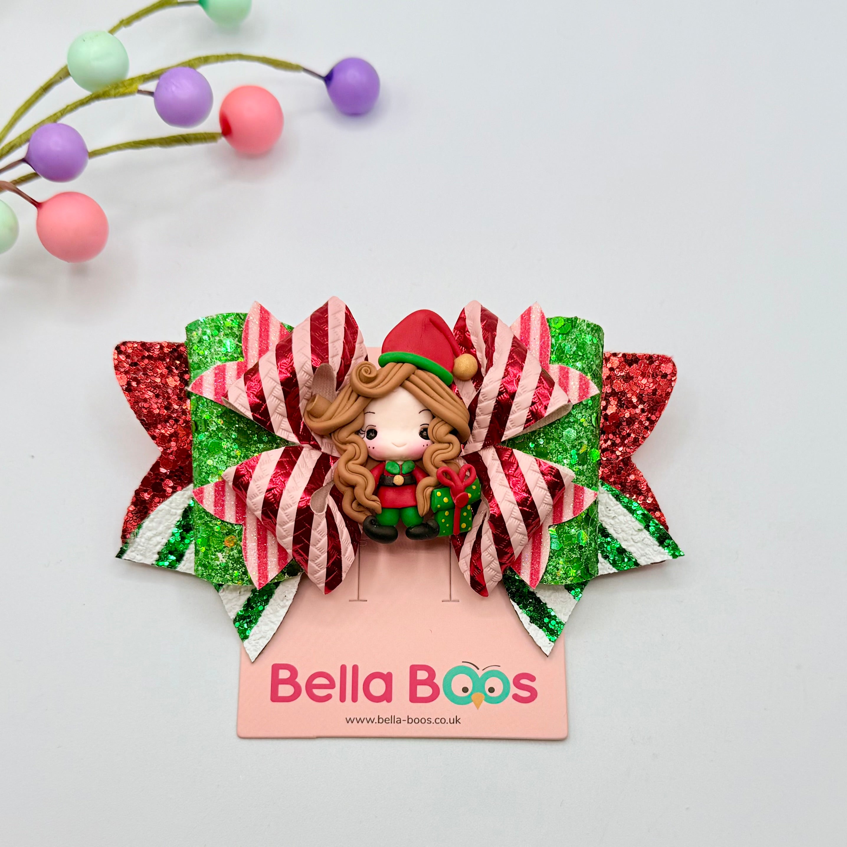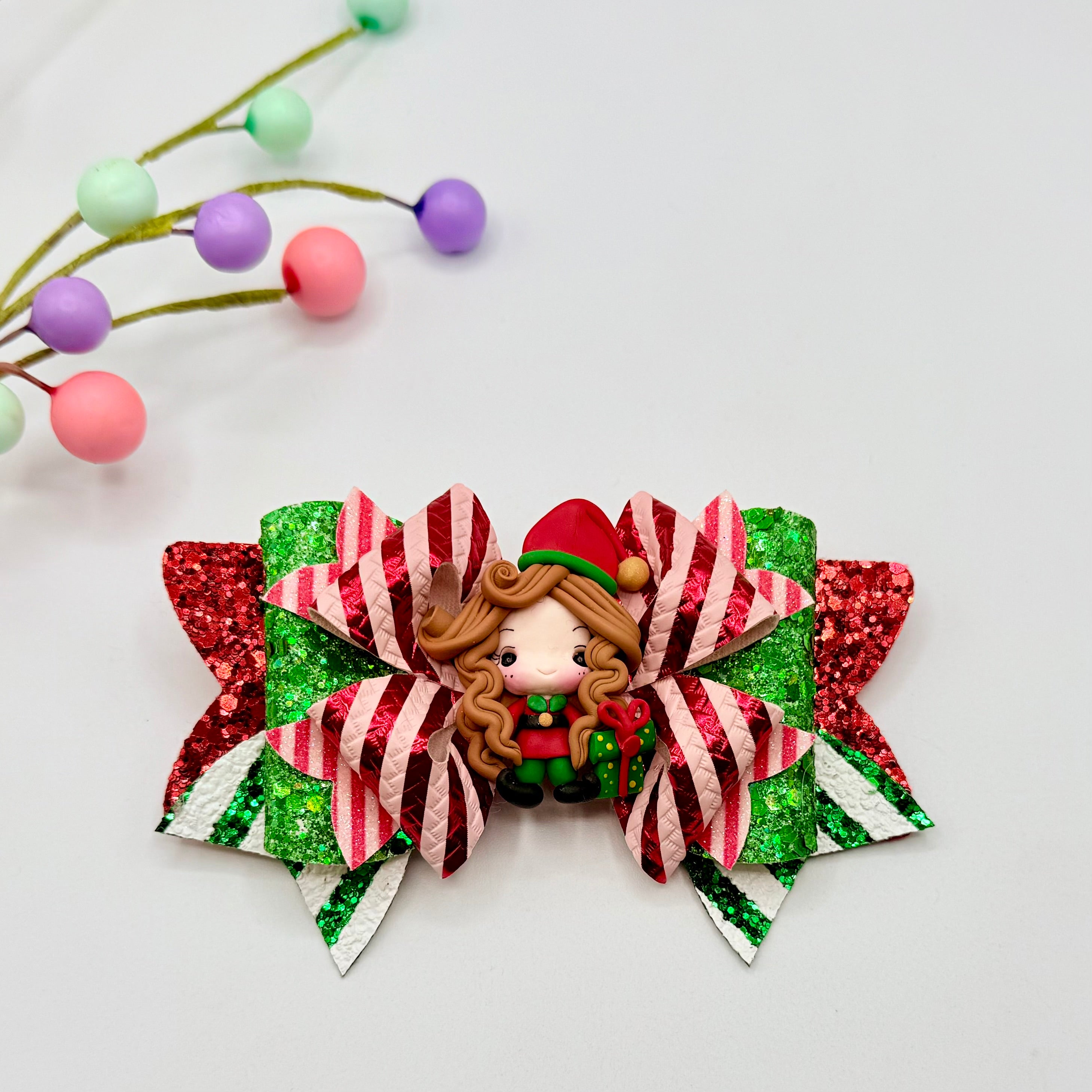 Deluxe Christmas Ellie The Elf Hair Bow - Handcrafted Clay