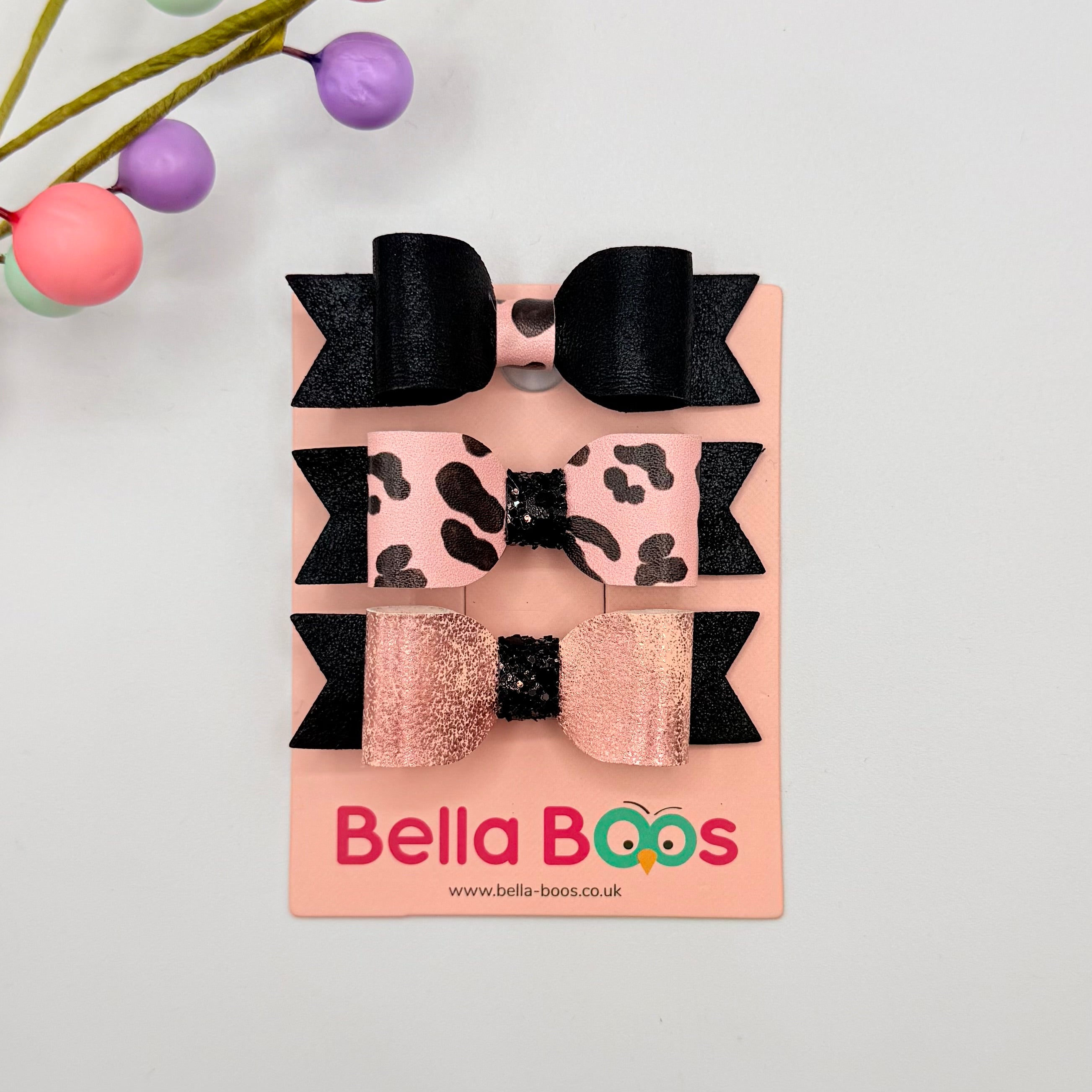 Itsy Bitsy Hair Bow Set - Pink Leopard