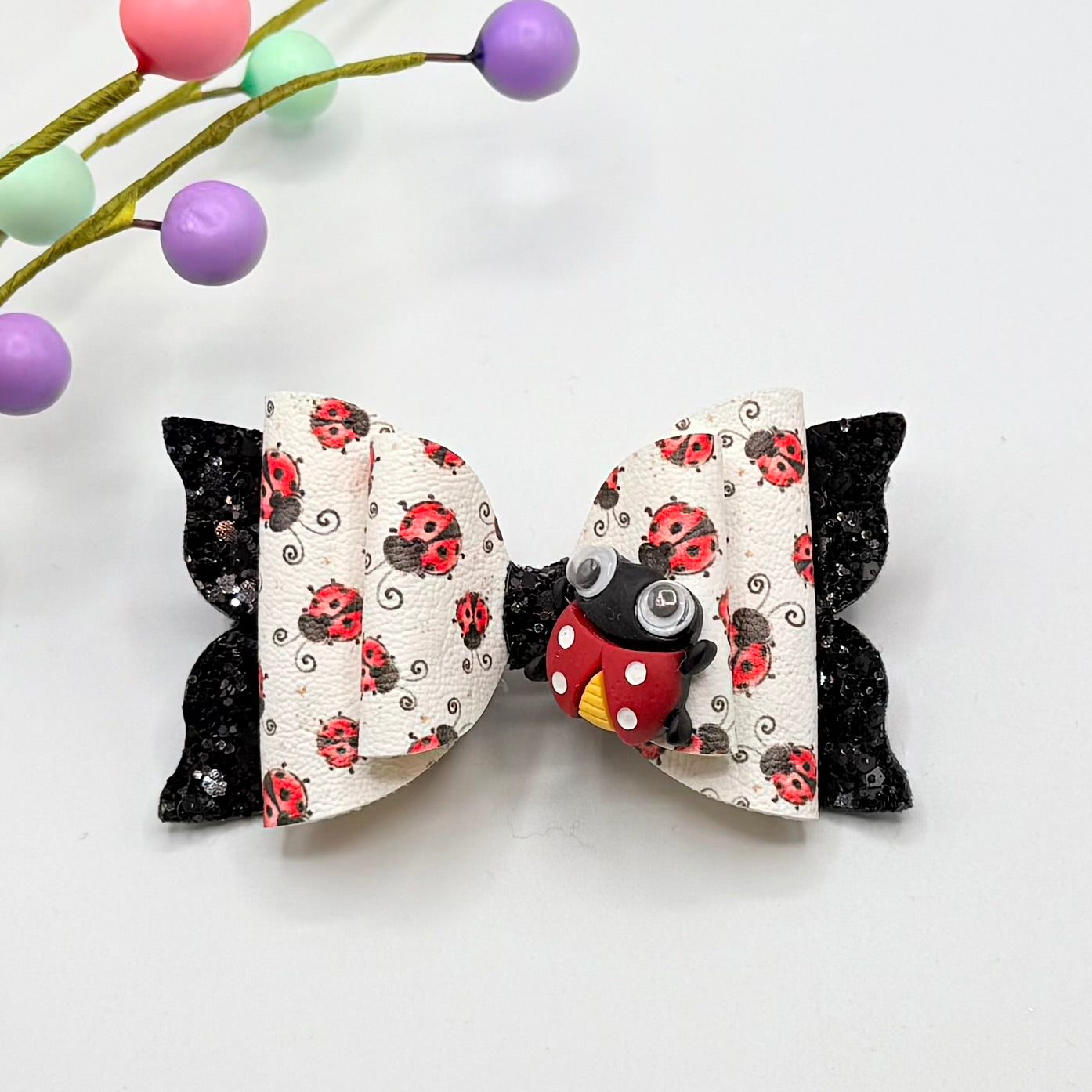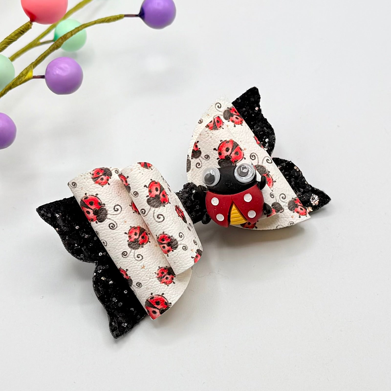 A cute lady bug embellishment sits on a lovely fabric, coved with the cutest print. Size is approx 8.5 by 5 cm.