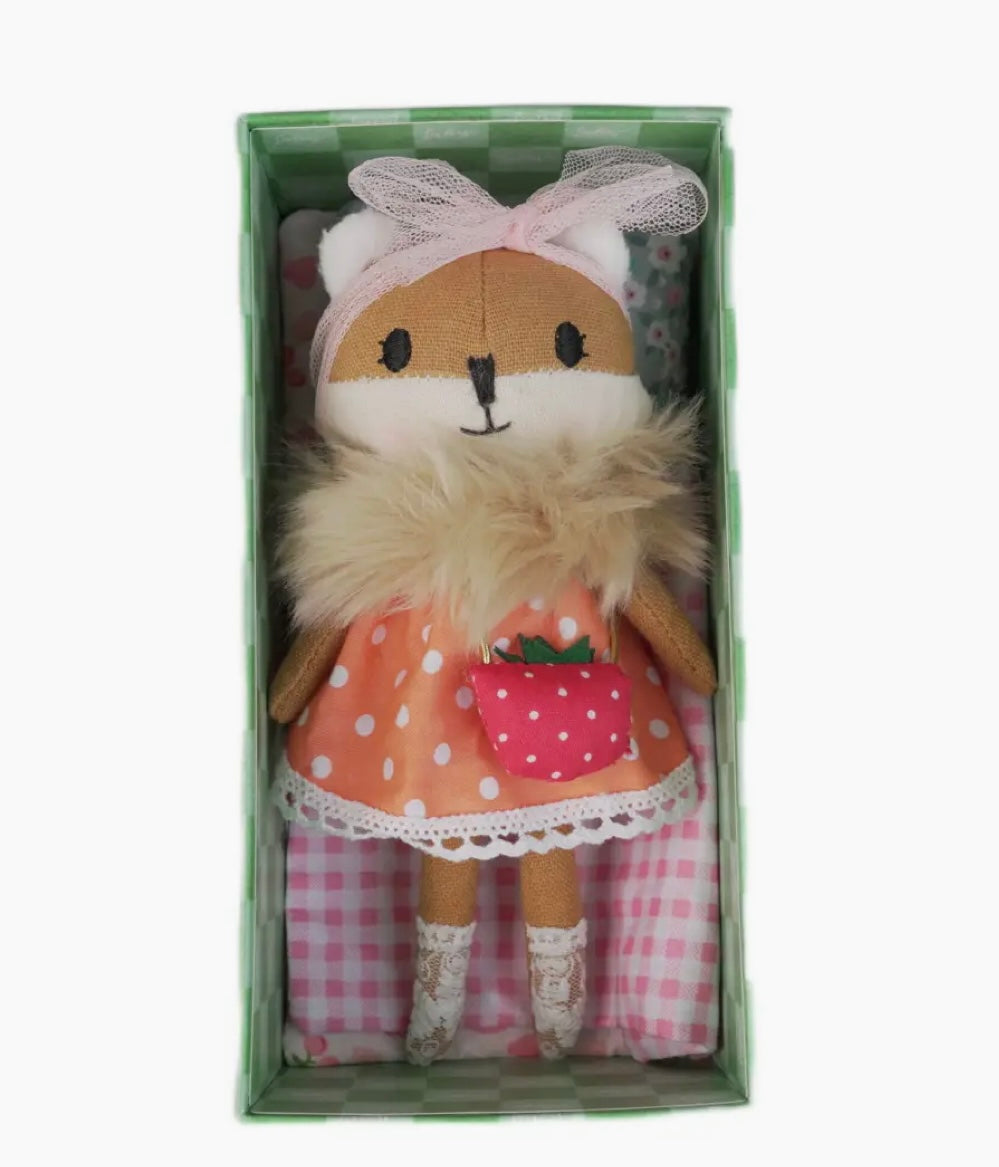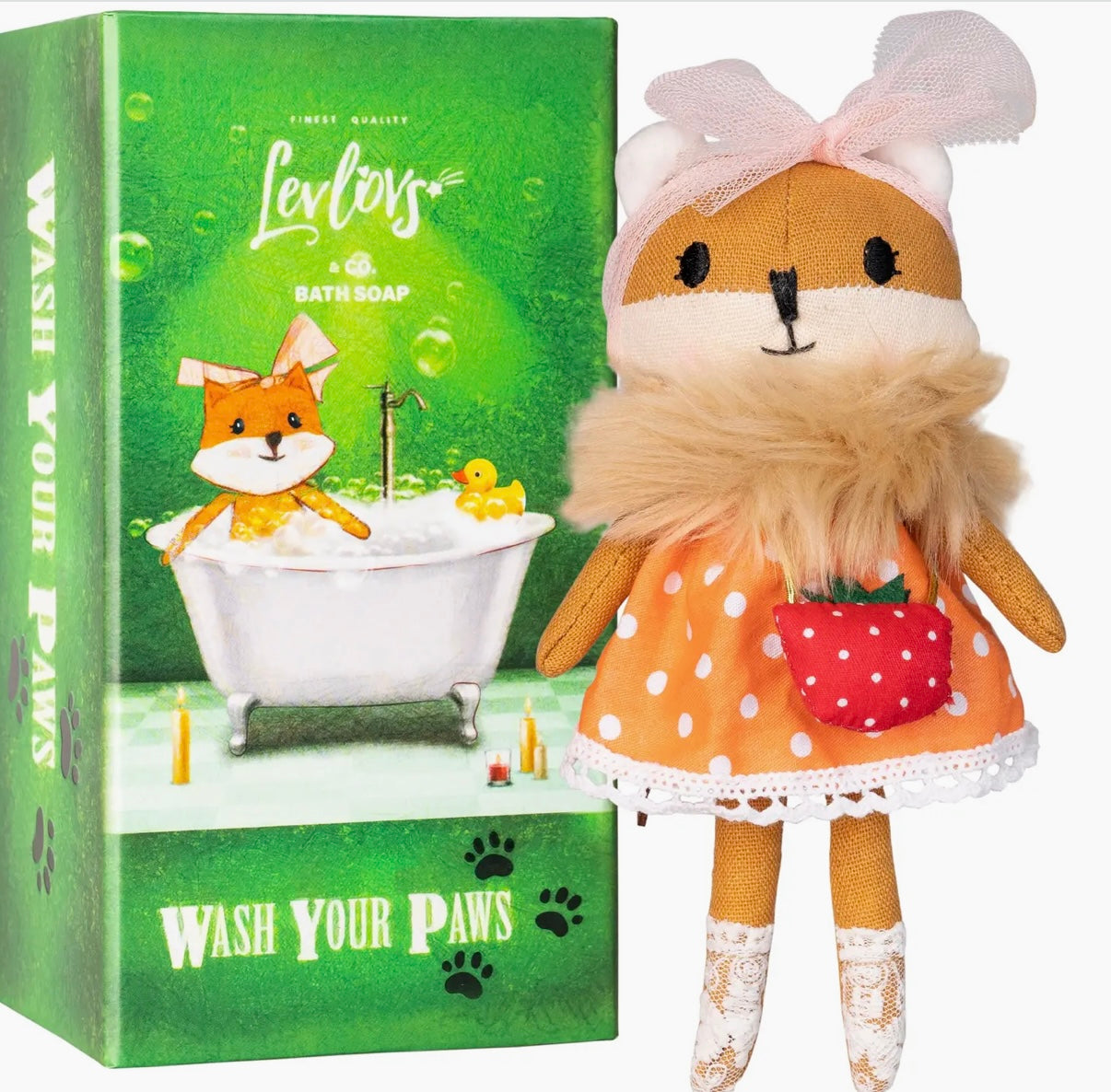 Bathing! In warm water, with bubbles and rubber duckies, playing in the bath with toys. Our fox friend takes baths often; she likes being clean, smelling nice, closing her eyes and imagining she's not in the bathtub but relaxing by the sea. After a warm bath, our fox friend puts on the trendiest dress, ties a bow, and wraps herself in a fluffy scarf. The color of her little purse always reminds her of her home in the forest.