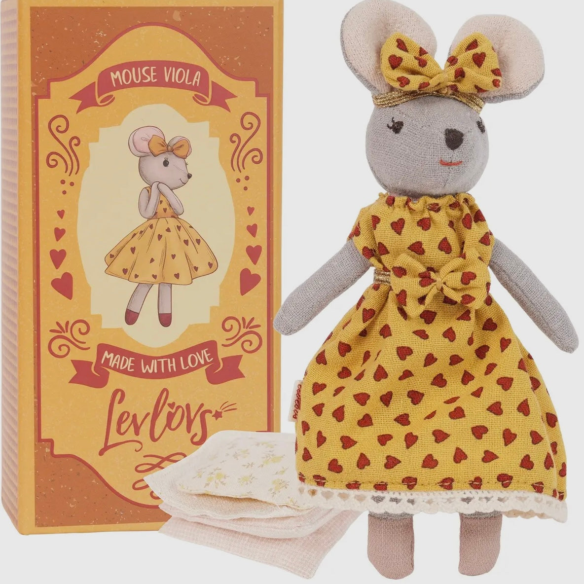 Meet Mouse Viola – Your Whimsical Linen Companion Say hello to Mouse Viola, a charming little mouse doll made with love and linen. Dressed in a sweet dress sprinkled with dainty hearts, she’s ready to steal hearts wherever she goes. Her delicate bow perched atop her head adds the perfect finishing touch to her playful personality. Whether she’s perched on a bookshelf, nestled into a nursery, or tucked into tiny hands for tea parties, Mouse Viola brings warmth, imagination, and a sprinkle of magic to any space. Crafted from soft, high-quality linen and designed for gentle adventures, she’s the perfect gift for little dreamers and collectors of whimsy alike.