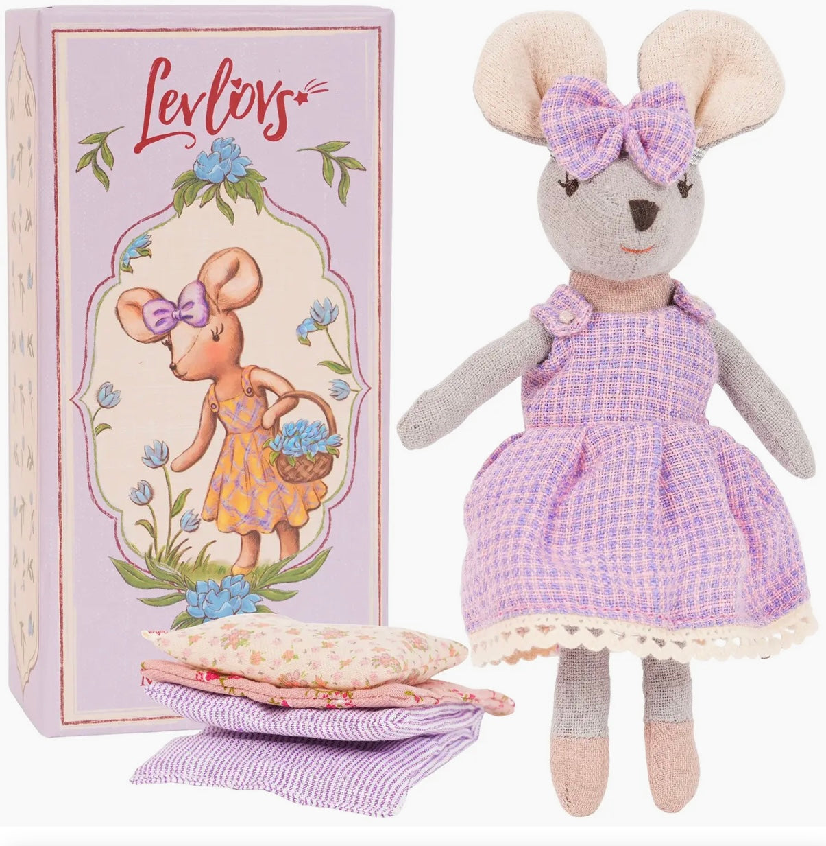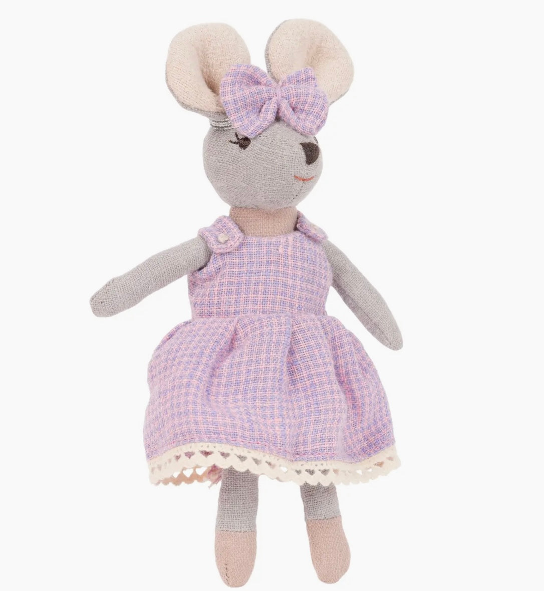 Introducing Mouse Violet – A Whisper of Lavender Dreams Quietly magical and full of gentle wonder, Mouse Violet is the soft-spoken sweetheart of the mouse family. She wears a lovely purple dress, like a field of lavender at dusk, with a dainty bow resting gracefully on her head. Every stitch tells a story of calm evenings, blooming petals, and cozy cuddles. Handmade with care from natural linen, Violet is a tender soul who brings peace, charm, and a sprinkle of dreaminess wherever she goes. She’s perfect for gentle play, nursery decor, or as a thoughtful gift for someone who loves all things soft and sweet.