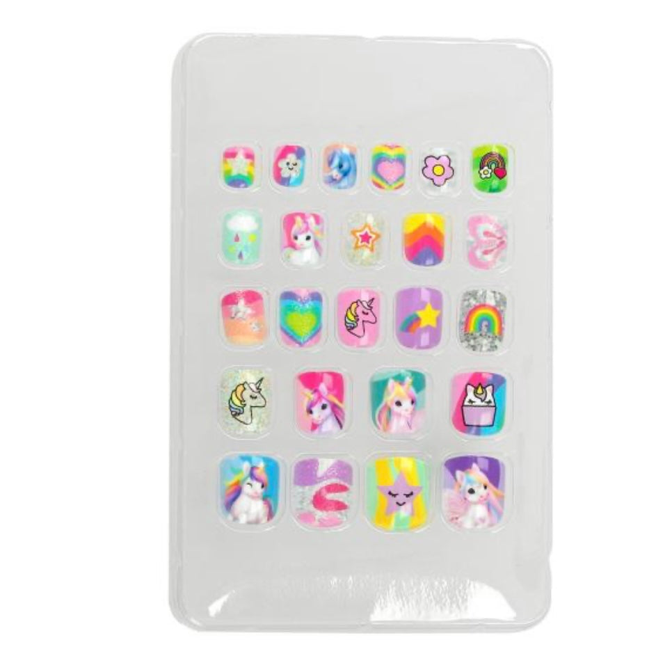 Cheerful fingernails for little unicorn fans: The self-adhesive artificial nails with cute motives and partly glitter are very easy to apply and just as easy to remove with water. 24 pieces in different sizes per set.
