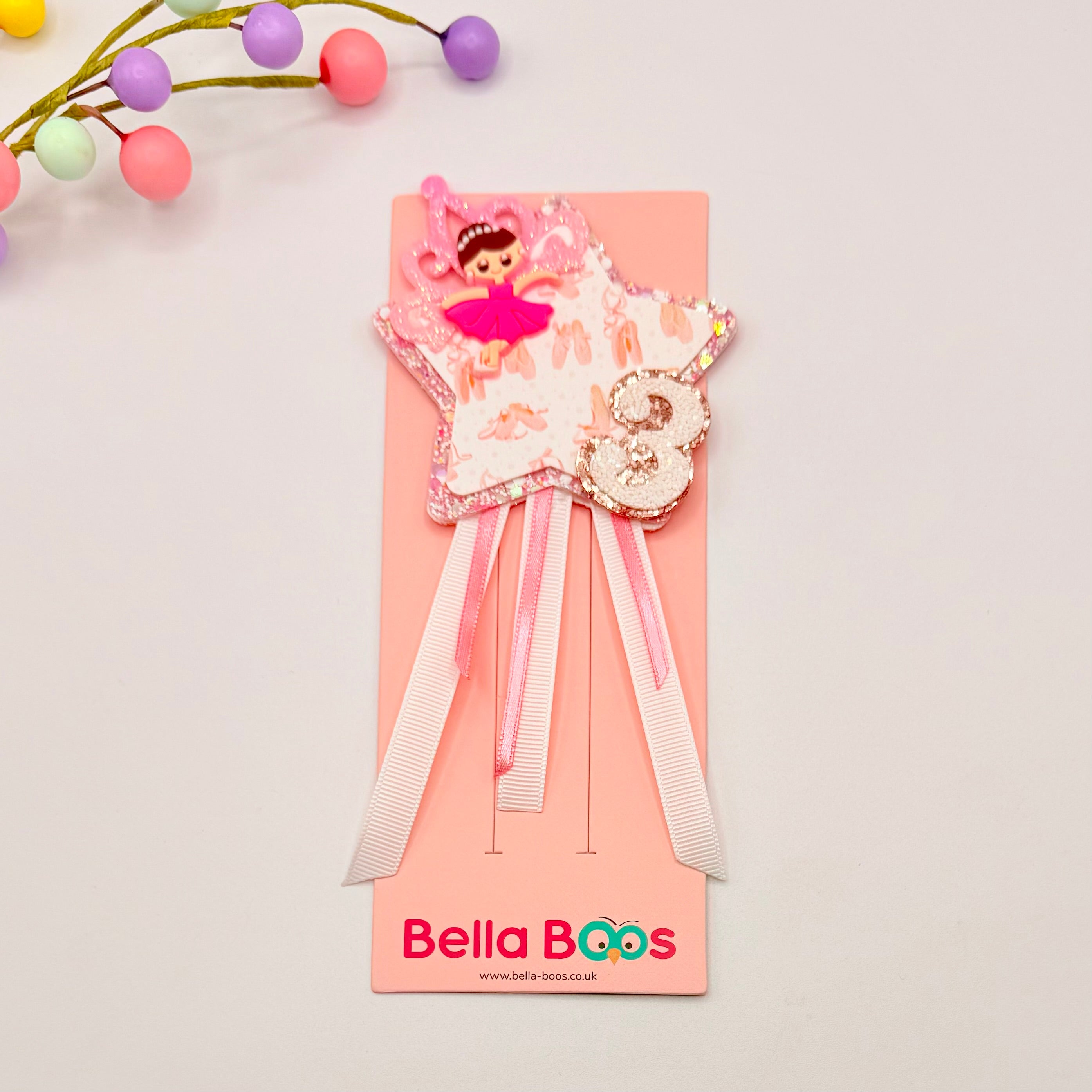 With a sparkly tiara and a cute Ballerina, this badge is perfect for any any dancing Princess. Please leave your desired age in the section available.