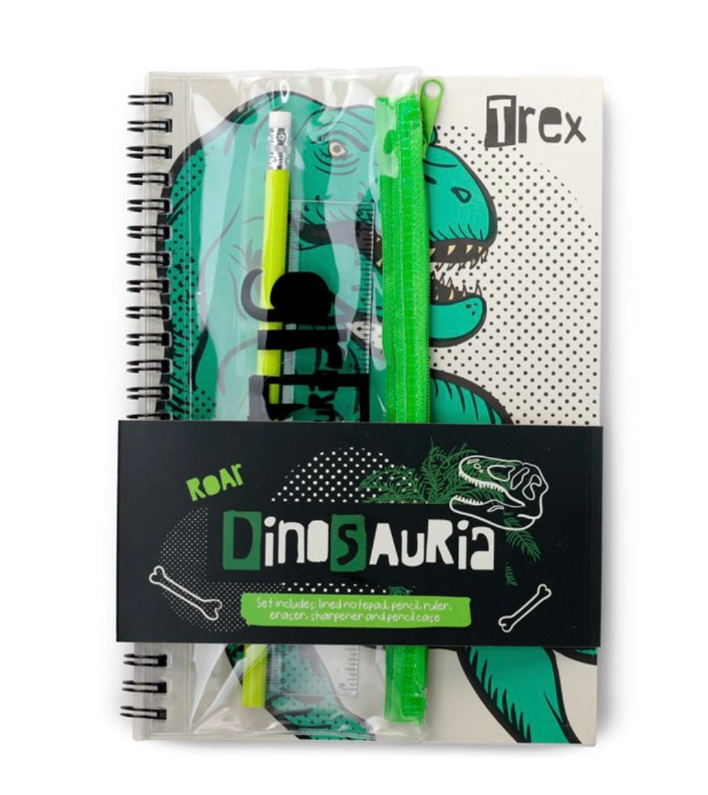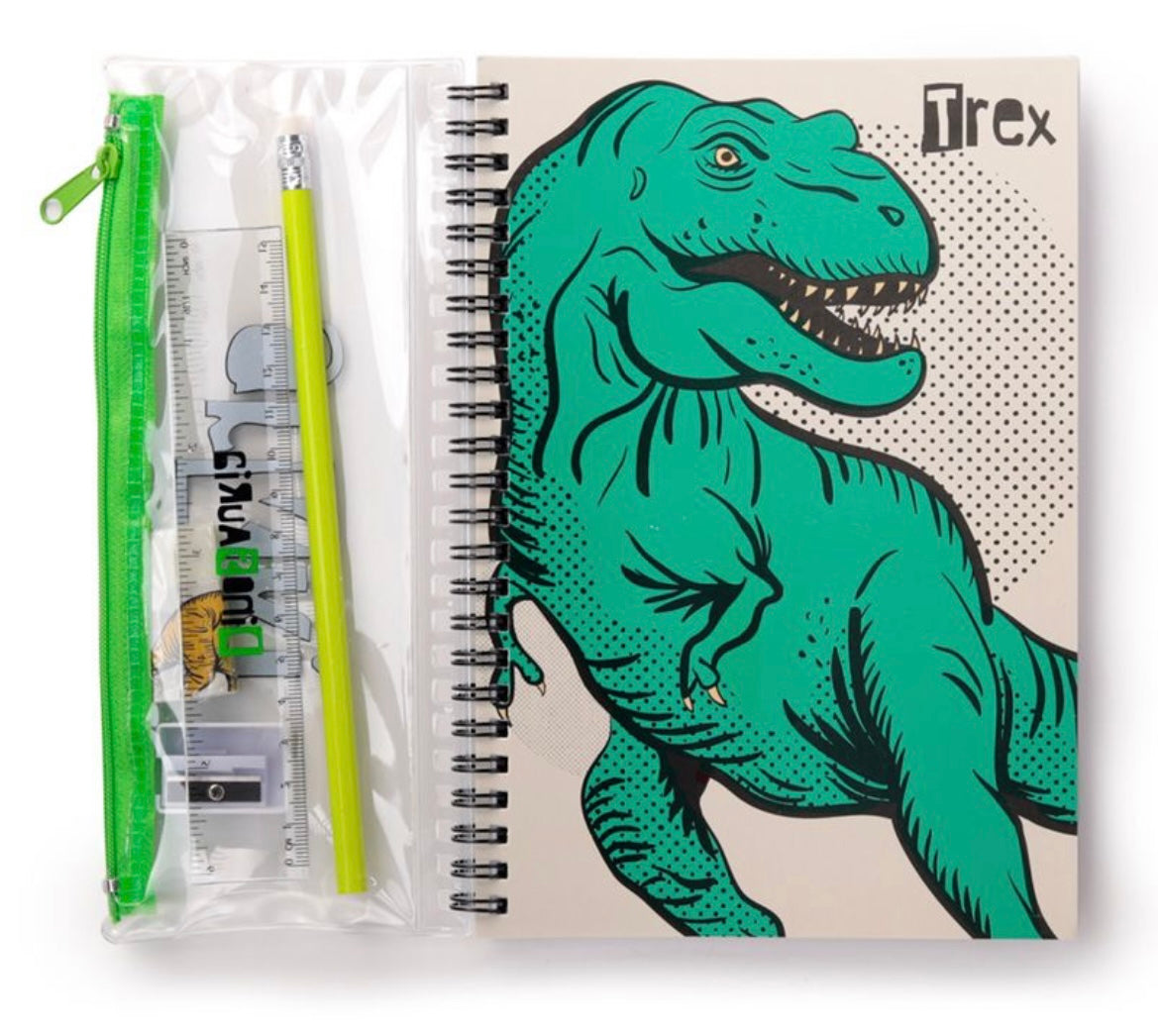 Dinosauria Ring Bound Notepad/Book & Pencil Case 6 Piece Stationery Set