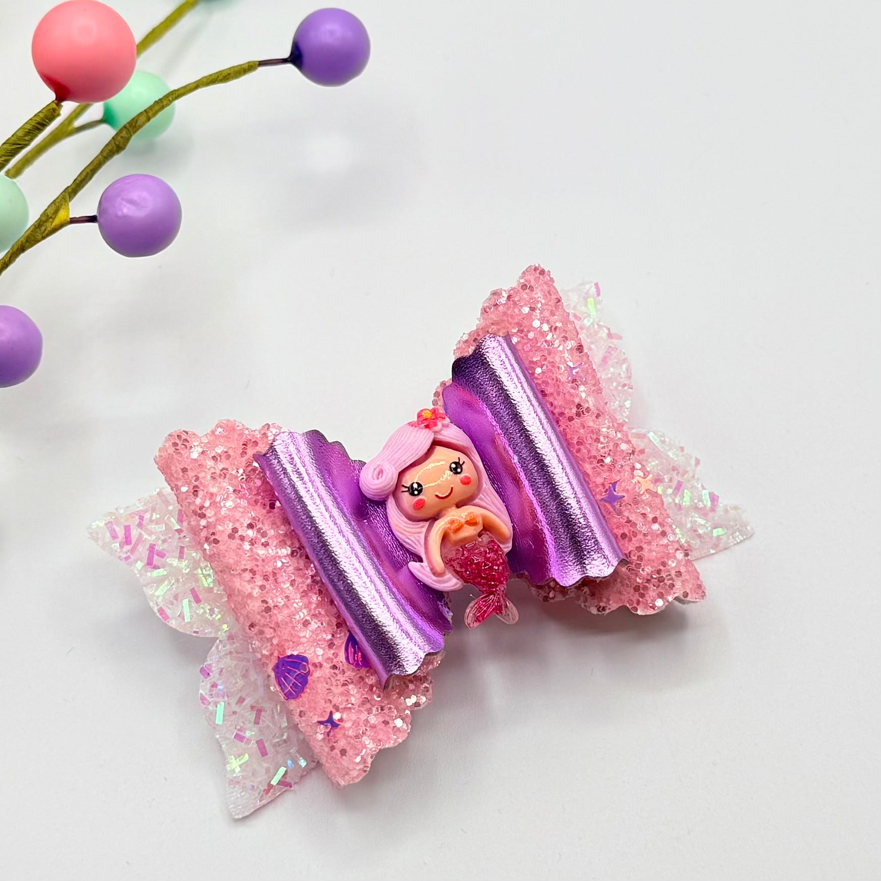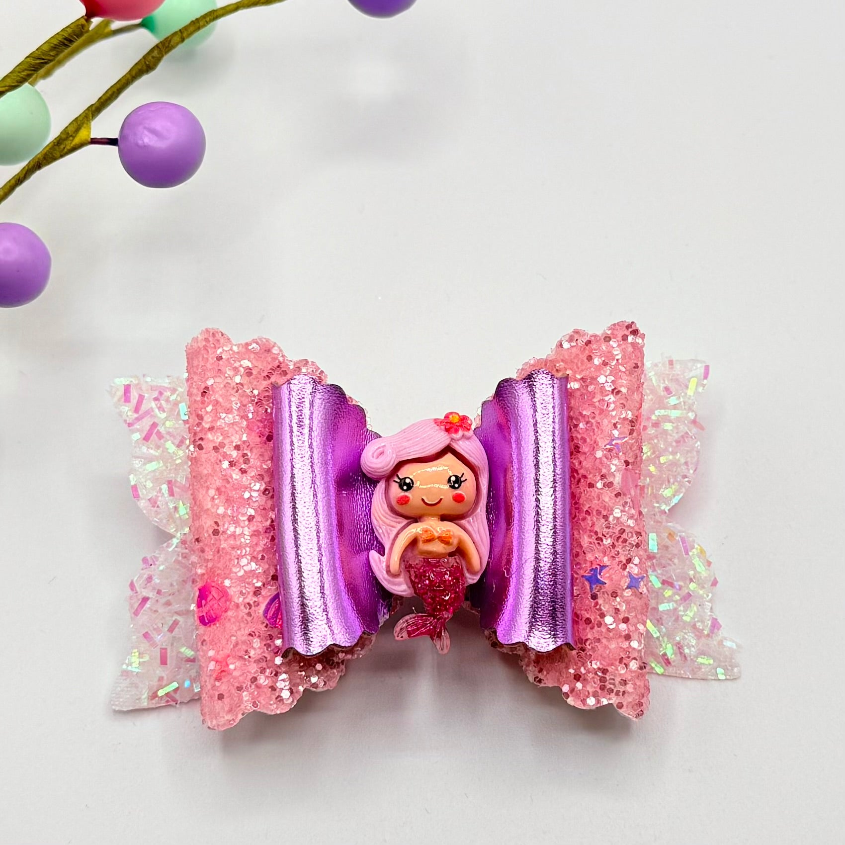 Double looped and made in a great selection of pretty fabrics. Finished with a beautiful, Mermaid embellishment. Size approx 9 by 6cm.