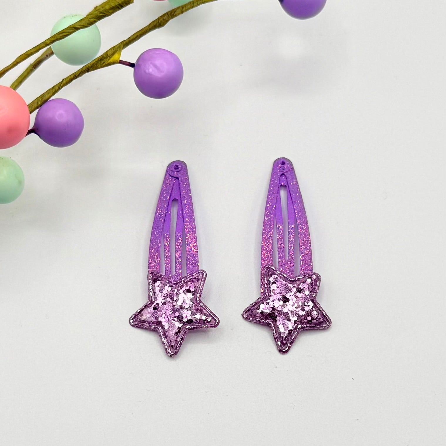 Glitter Star Hair Clip Set - Purple