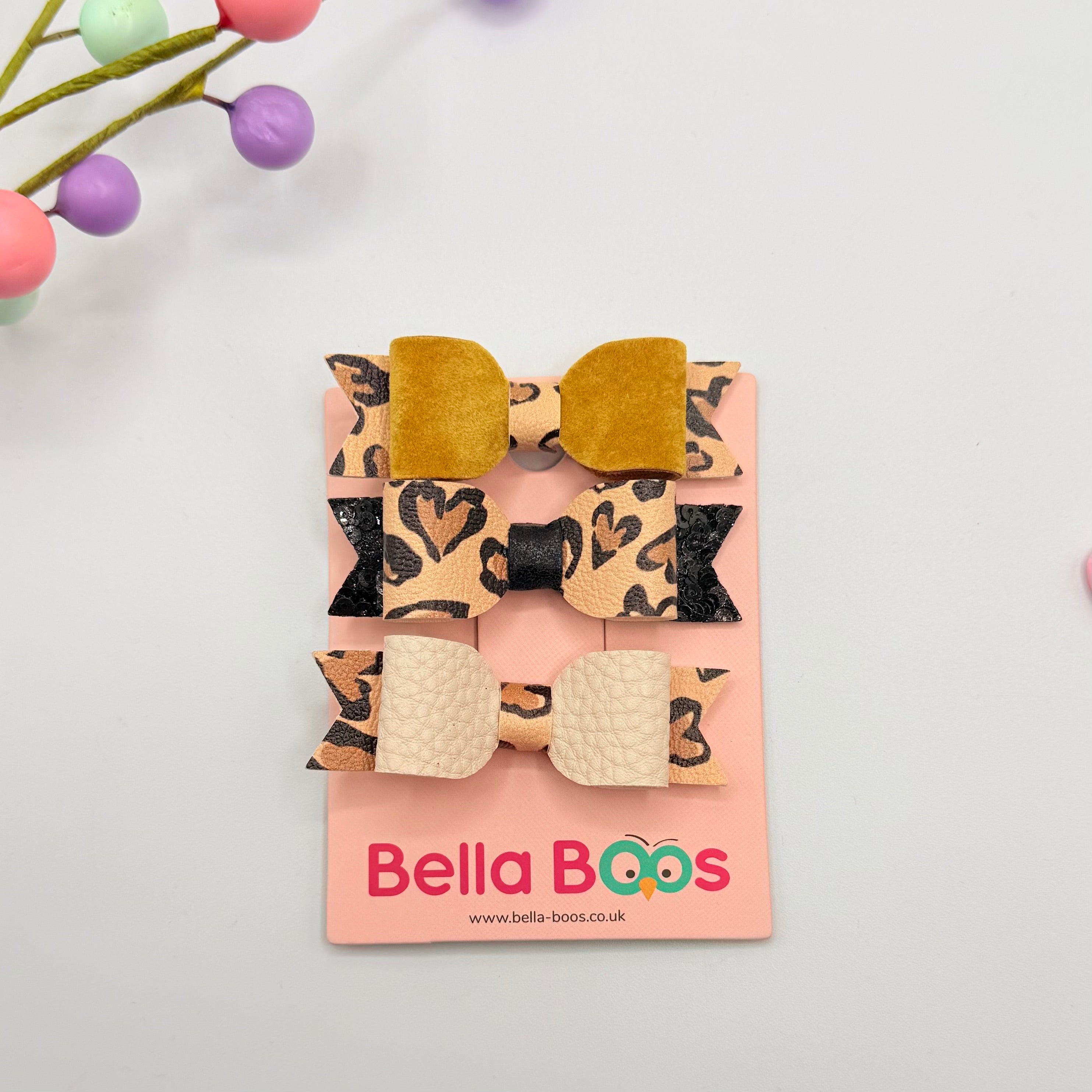 A set of 3 pretty hairs bows, all made in lovely fabrics, all fitted with crocodile clips and each approx 6.5 by 2cm.