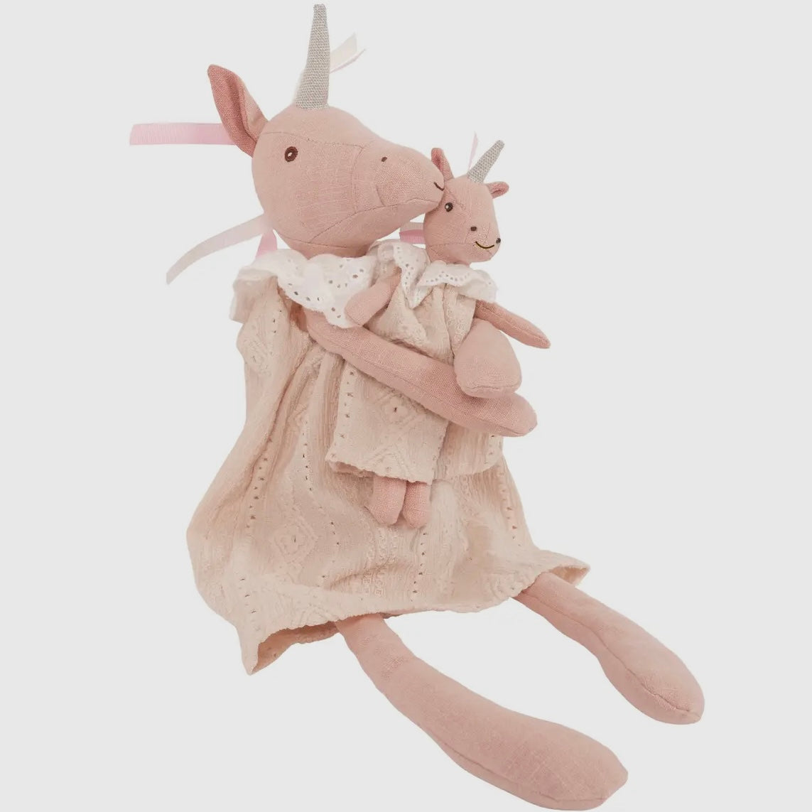 LEVLOVS Mom and Baby Unicorn Linen Dolls