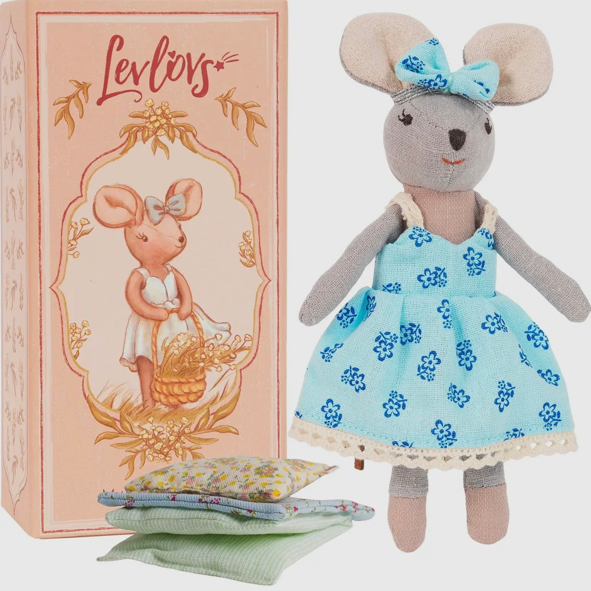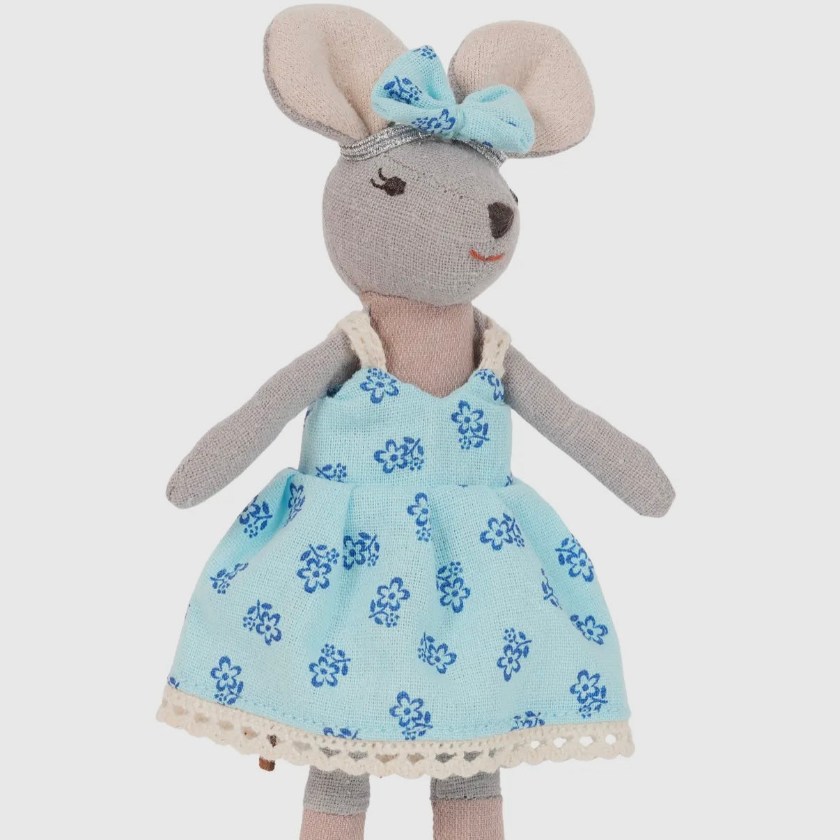 Say Hello to Mouse Jasmina – A Blossom in the Sky With petals in her dress and daydreams in her heart, Mouse Jasmina floats through the world like a soft spring breeze. She wears a lovely light blue dress, the color of the open sky, adorned with the tiniest flower print—like a secret garden stitched into fabric. Her sweet little bow rests gently on her head, ready for play, picnics, and peaceful naps under imaginary trees. Lovingly handmade from soft linen, Jasmina is a gentle soul full of wonder and whimsy. Perfect for gifting, decorating, or collecting, she brings a breath of calm and a whisper of nature’s magic wherever she goes.