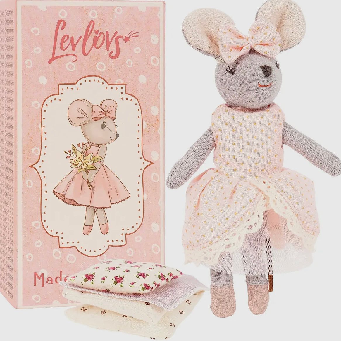 Introducing Mouse Jasmine – A Touch of Blush and Gold Magic Delicate, dreamy, and full of charm – Mouse Jasmine is here to twirl her way into your heart. Dressed in a soft light pink dress dusted with golden, sweet-as-honey dots, she glimmers with gentle elegance. Her matching bow, neatly perched on her head, completes her darling look with a touch of sparkle. Made from soft linen and stitched with love, Jasmine is the perfect companion for tea parties, bedtime stories, or simply sitting pretty on a shelf bringing joy wherever she rests. Whether gifted or kept as a treasured keepsake, this tiny mouse brings a sprinkle of magic and a whole lot of heart.