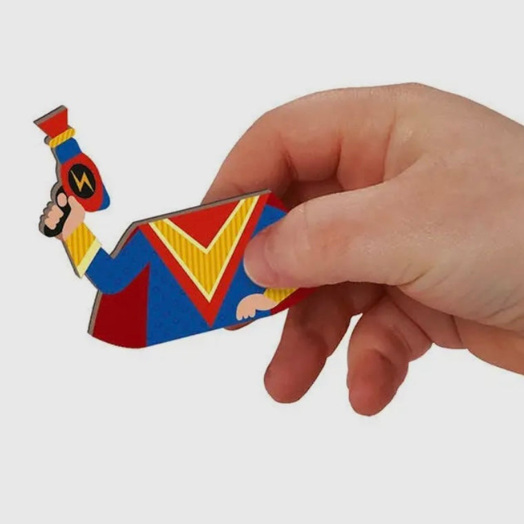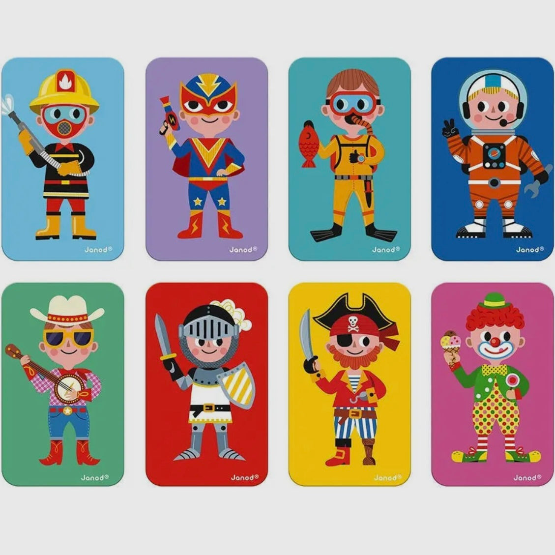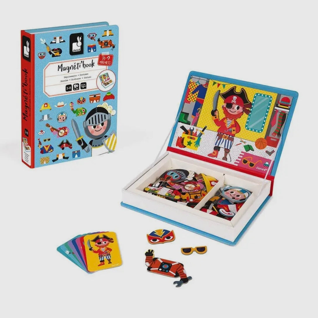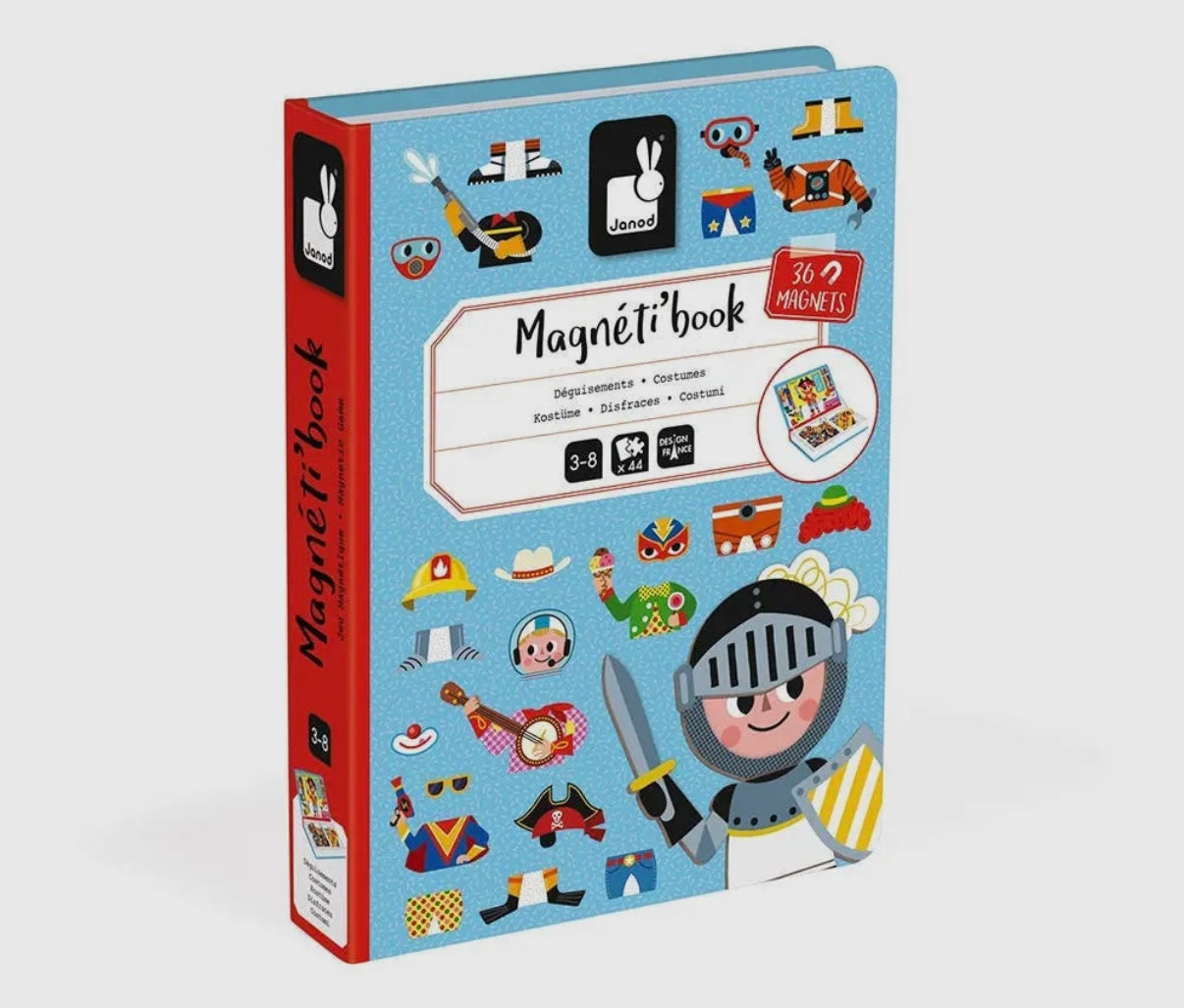 Magnetic educational game in cardboard for boys on the outfit theme. Composed of 36 magnets and 8 cards. Once the book is opened, the aim is to make on the stage the same outfit as indicated on the card thanks to the magnets.