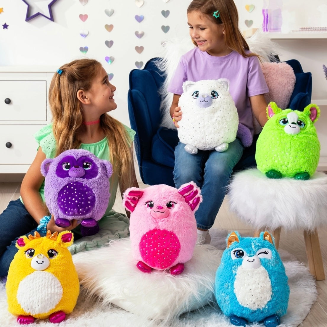 The newest edition of misfittens that features a sparkling collection of squished plush cats, each covered in glitter with beautiful gemstone noses! The perfect cuddly collectable.