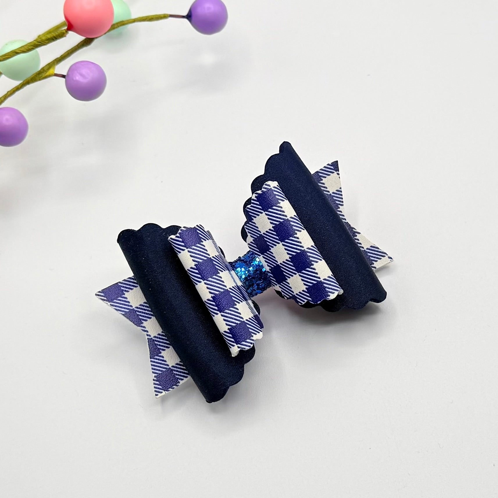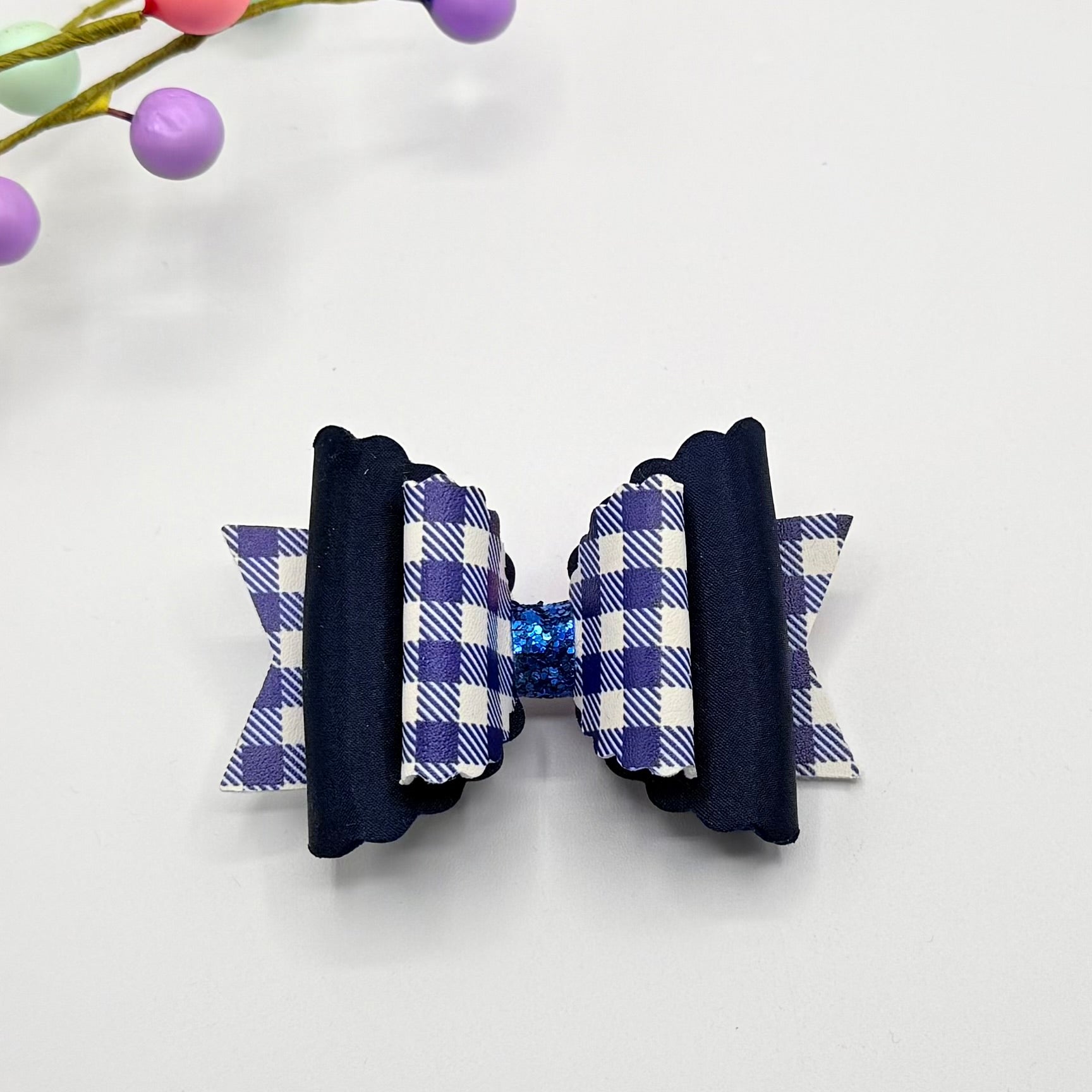 A lovely mix of fabrics make this double looped hair bow. Size is approx 8.5 by 5.5cm.