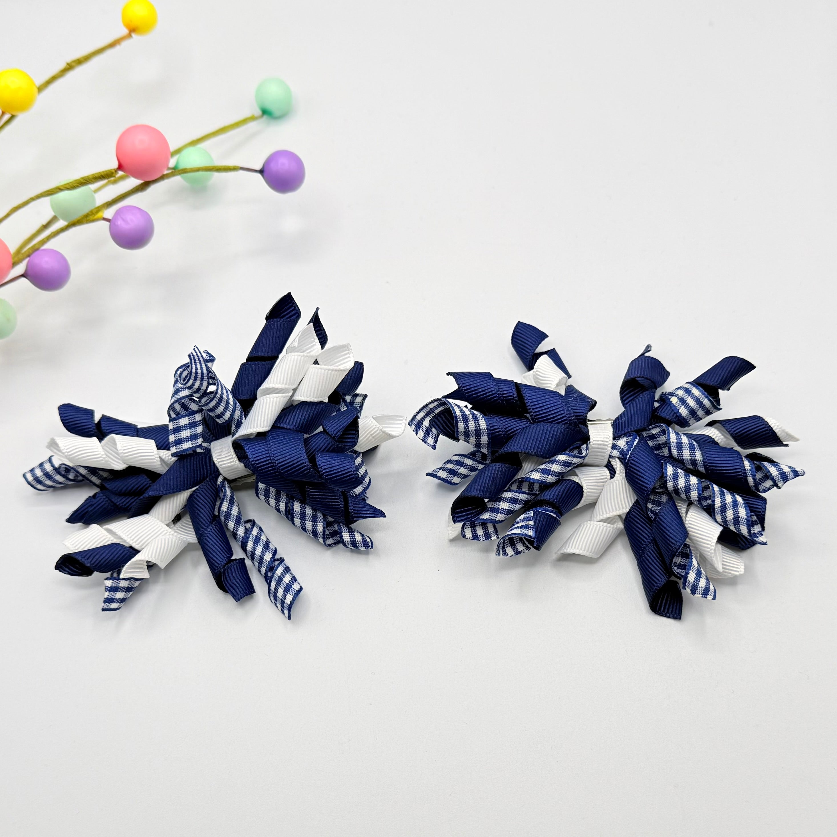 Lots of curly ribbons all attached to a crocodile clip. Set of 2.