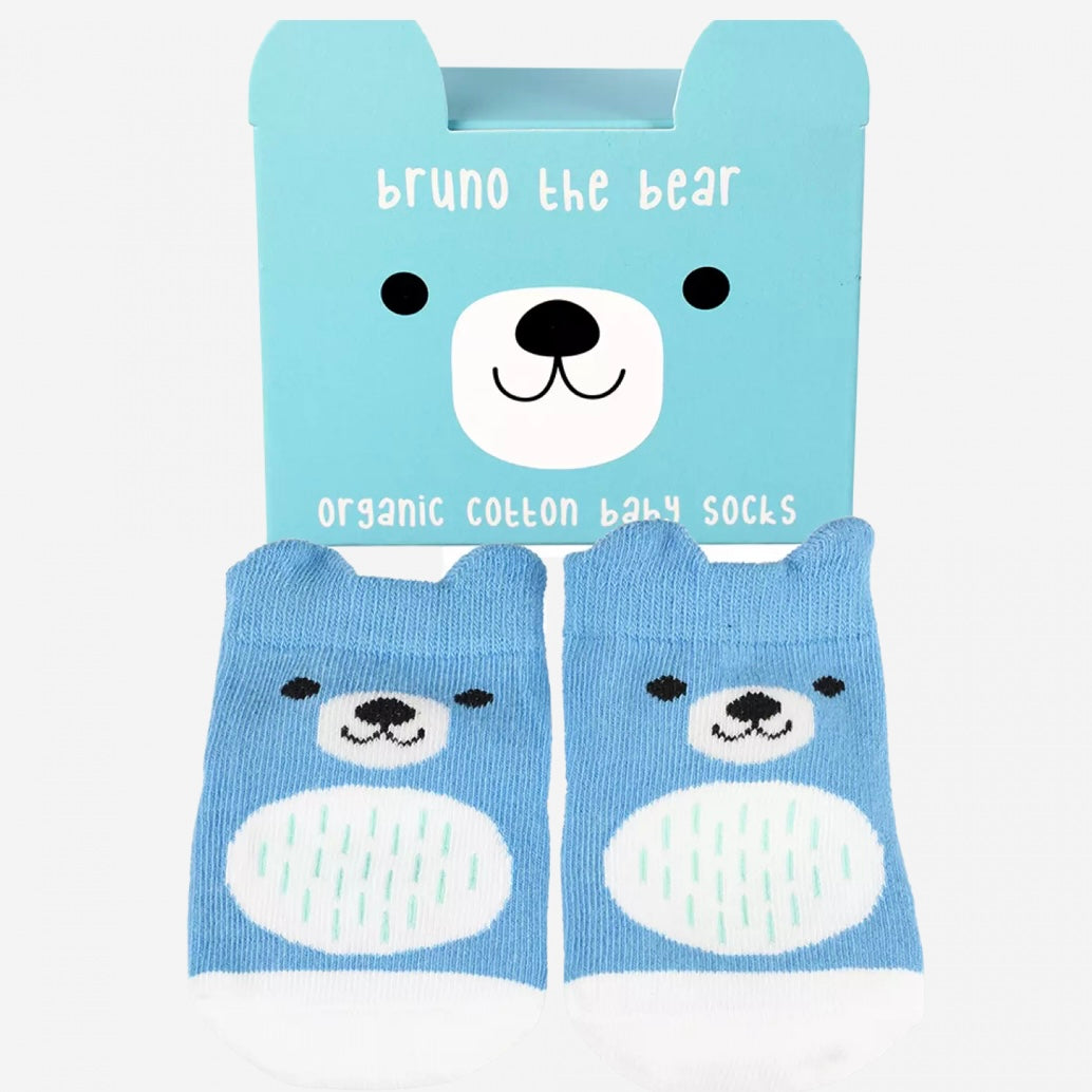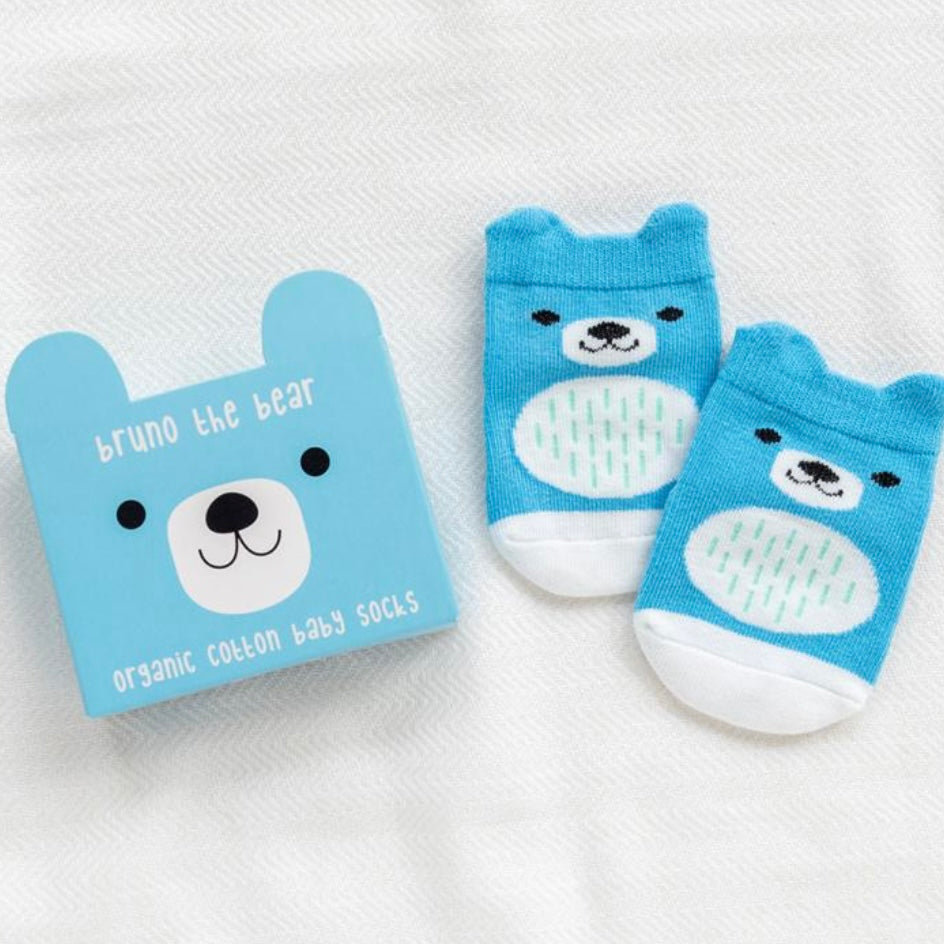 An adorable pair of blue bear-themed socks for your baby’s cute toes. Made out of organic cotton, these will keep little feet comfy and warm while still looking adorable! A sweet gift for a newborn’s christening or birthday.