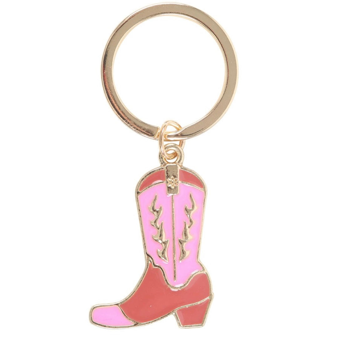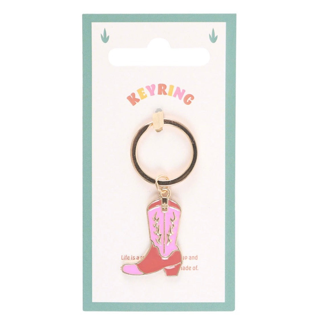 This girly pink cowgirl keyring is presented on a matching backing card. A great gift.