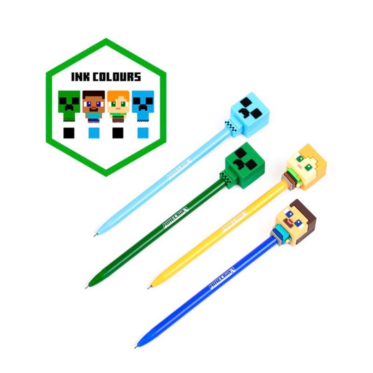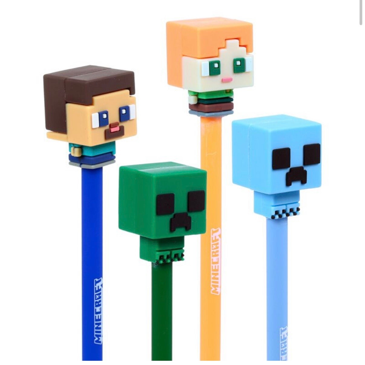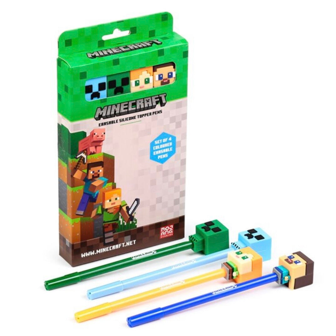 Set of 4 Erasable Pens with Minecraft Chibi Silicone Topper