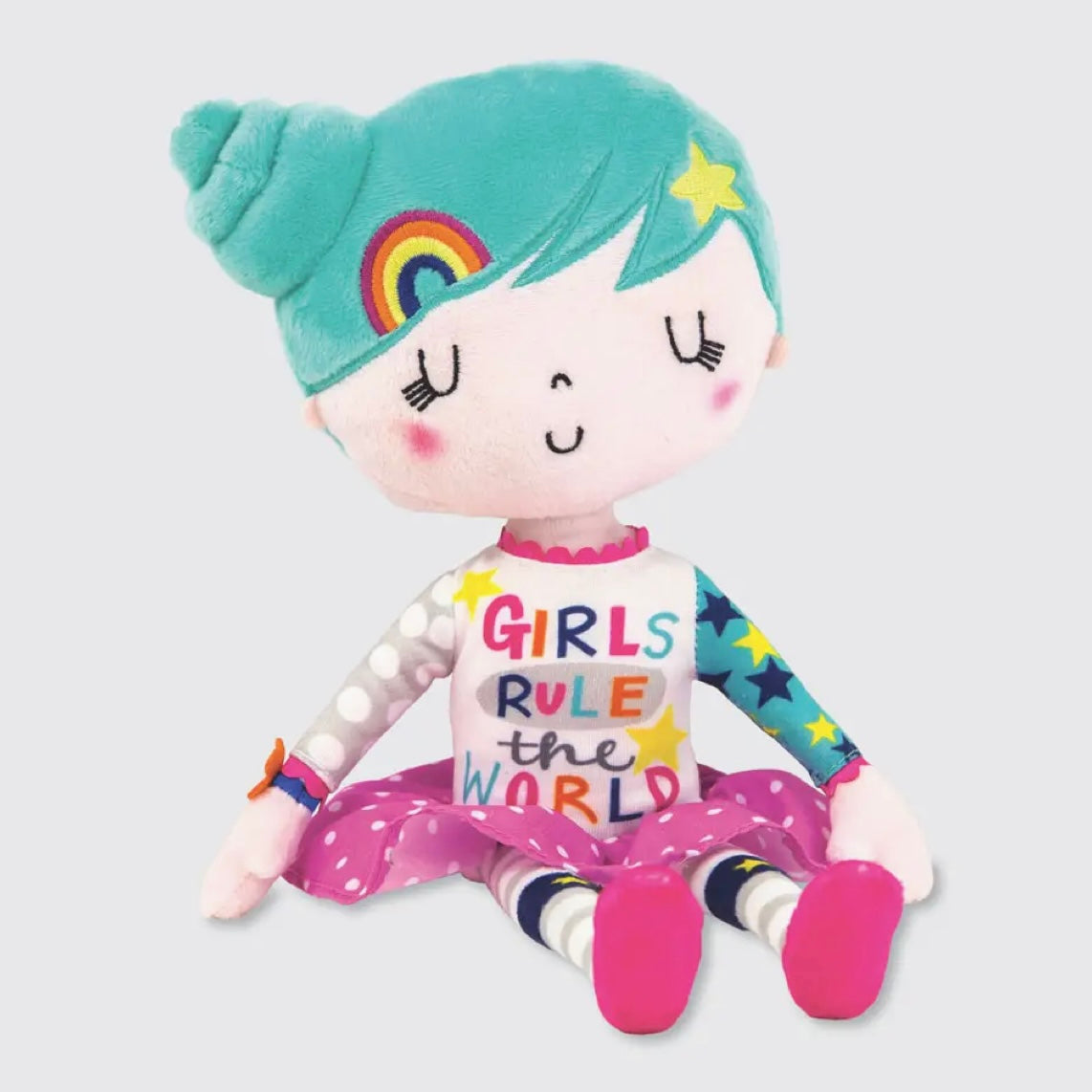 I'm Suki Starburst. I am smart, kind, and brave. I love new adventures, bright colours and being with friends. I believe I can do anything if I work hard enough. Here's to 'girl power!' A large plush character. Each doll has been made to the highest standard with a mix of textured fabrics to suit the character and the multicoloured embroidery adds extra attention to detail. Suitable from birth. Size: approx. Height 32 cm. Suitable from birth.