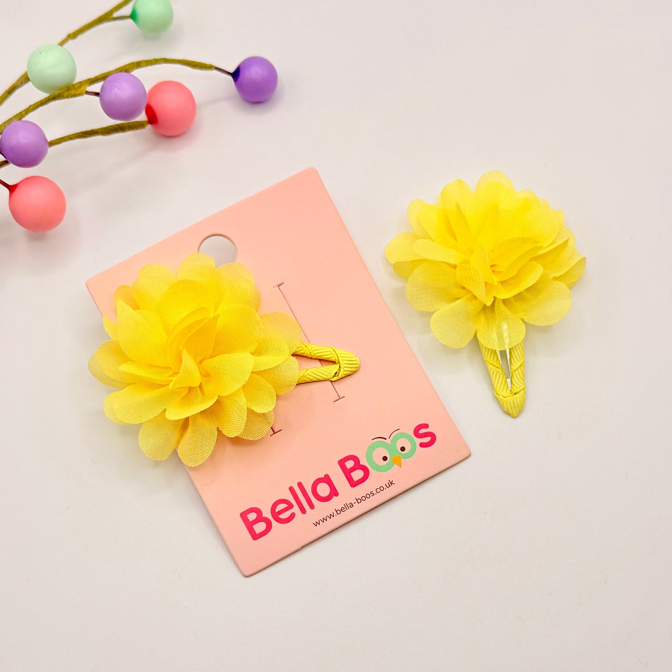 lovely set of 2 matching, tulle flower snap style hair clips.