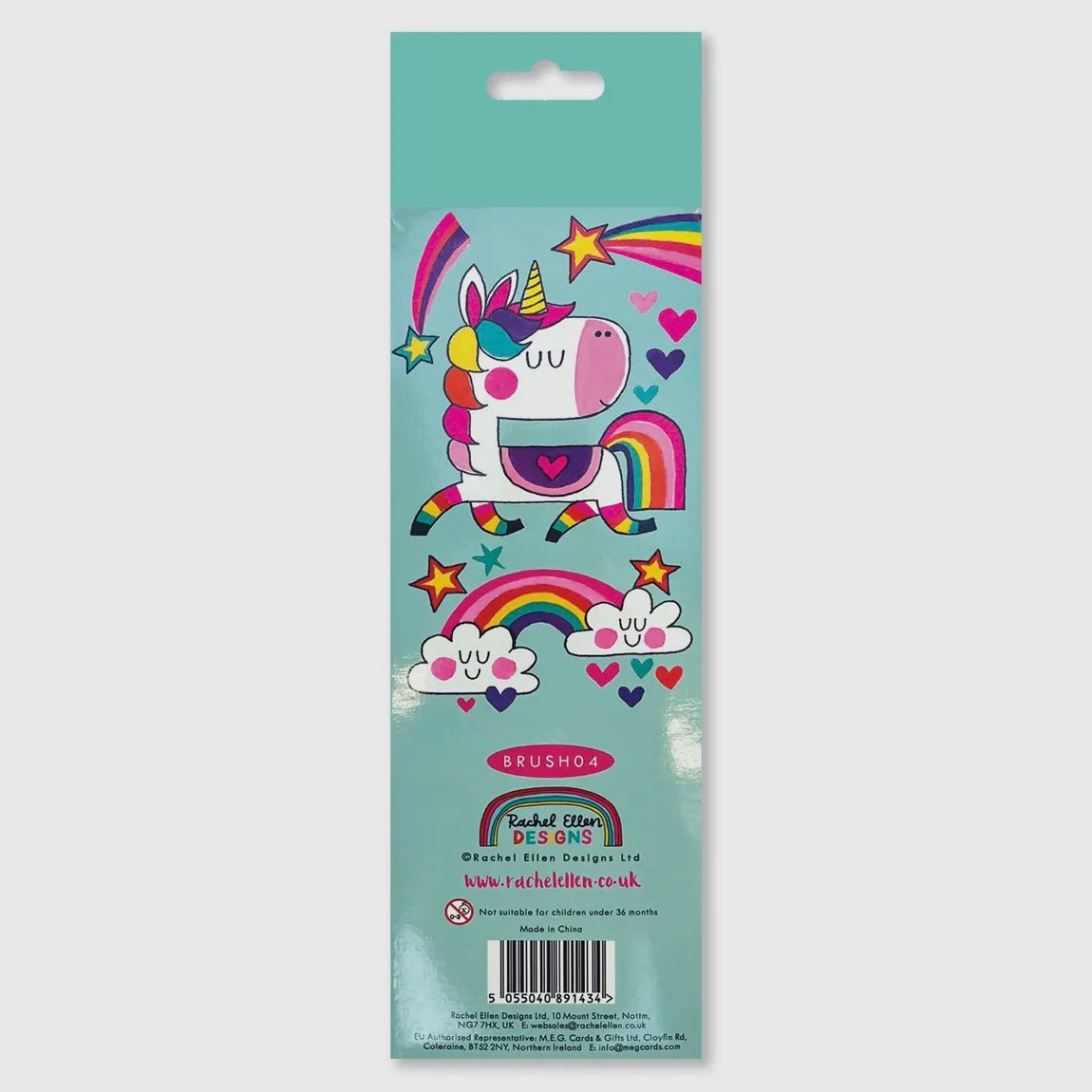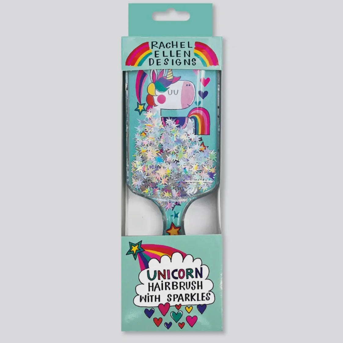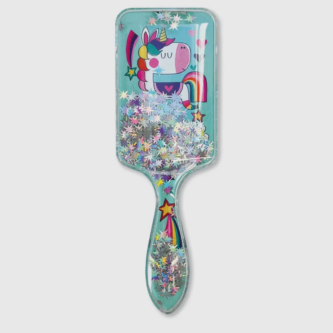 This pretty new Unicorn themed hairbrush is easy to hold, good for detangling hair and has a rubber cushioned base for added comfort. The back of the brush features sparkly holographic stars which move around. Supplied in an attractive co-ordinating box with euro hook. PACKAGING: Cardboard box
