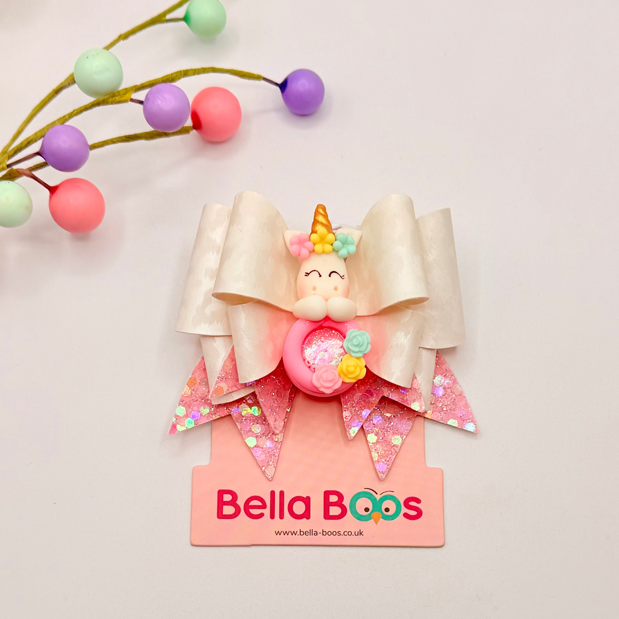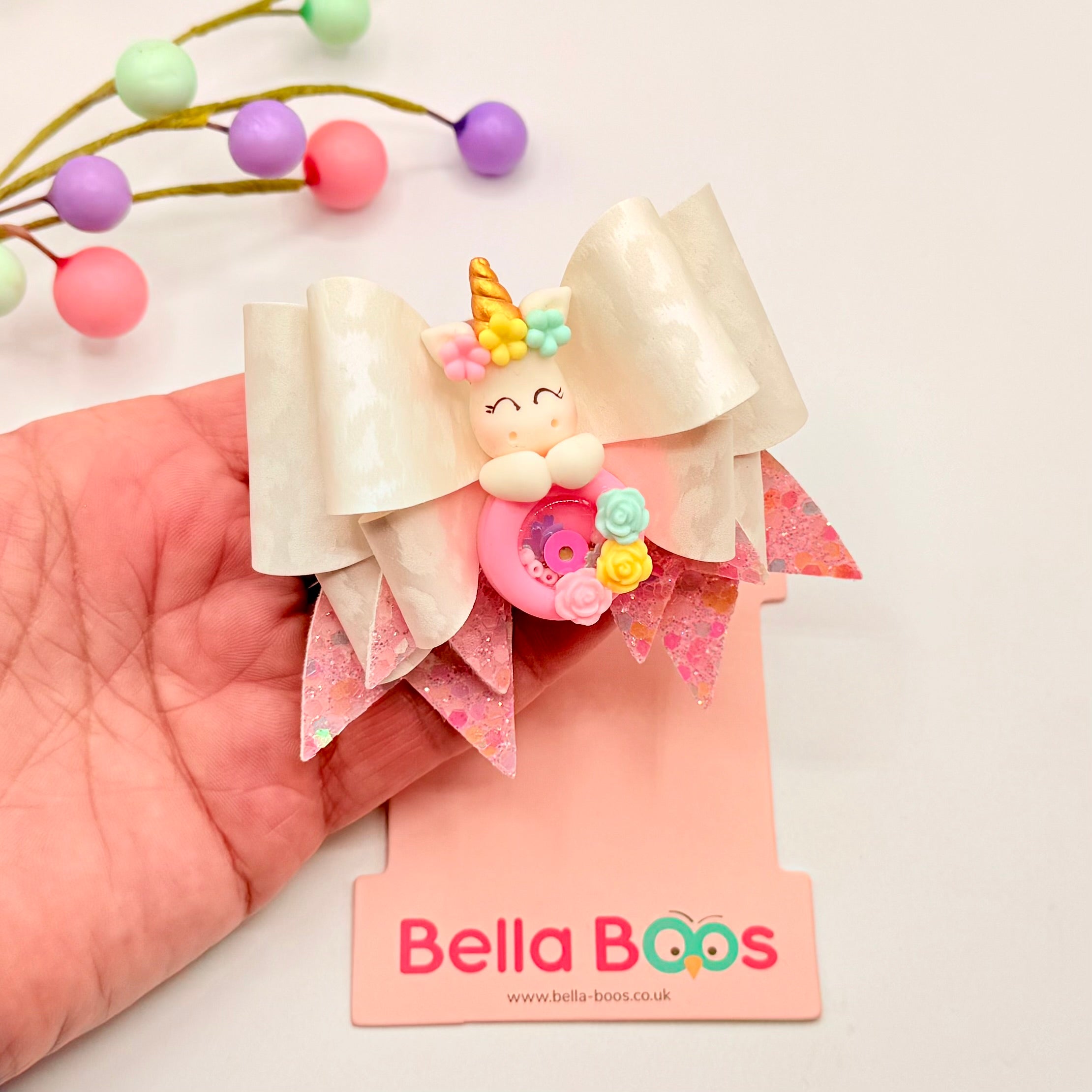 Unicorn Shaker Hair Bow - Handcrafted Clay