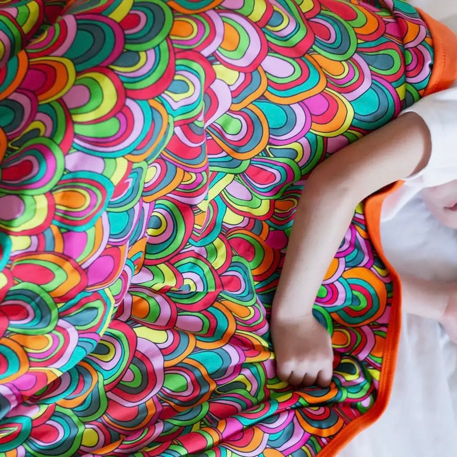 Snuggle up in one of these colourful and soft, XXL Retro Rainbow Blankets. Crafted in England from super-soft cotton, this double-layered blanket super gentle on delicate skin while adding a touch of fun retro charm.