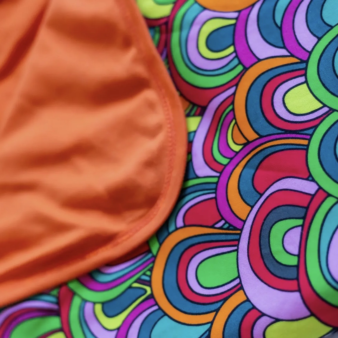 • Double-layered design with plain black cotton reverse